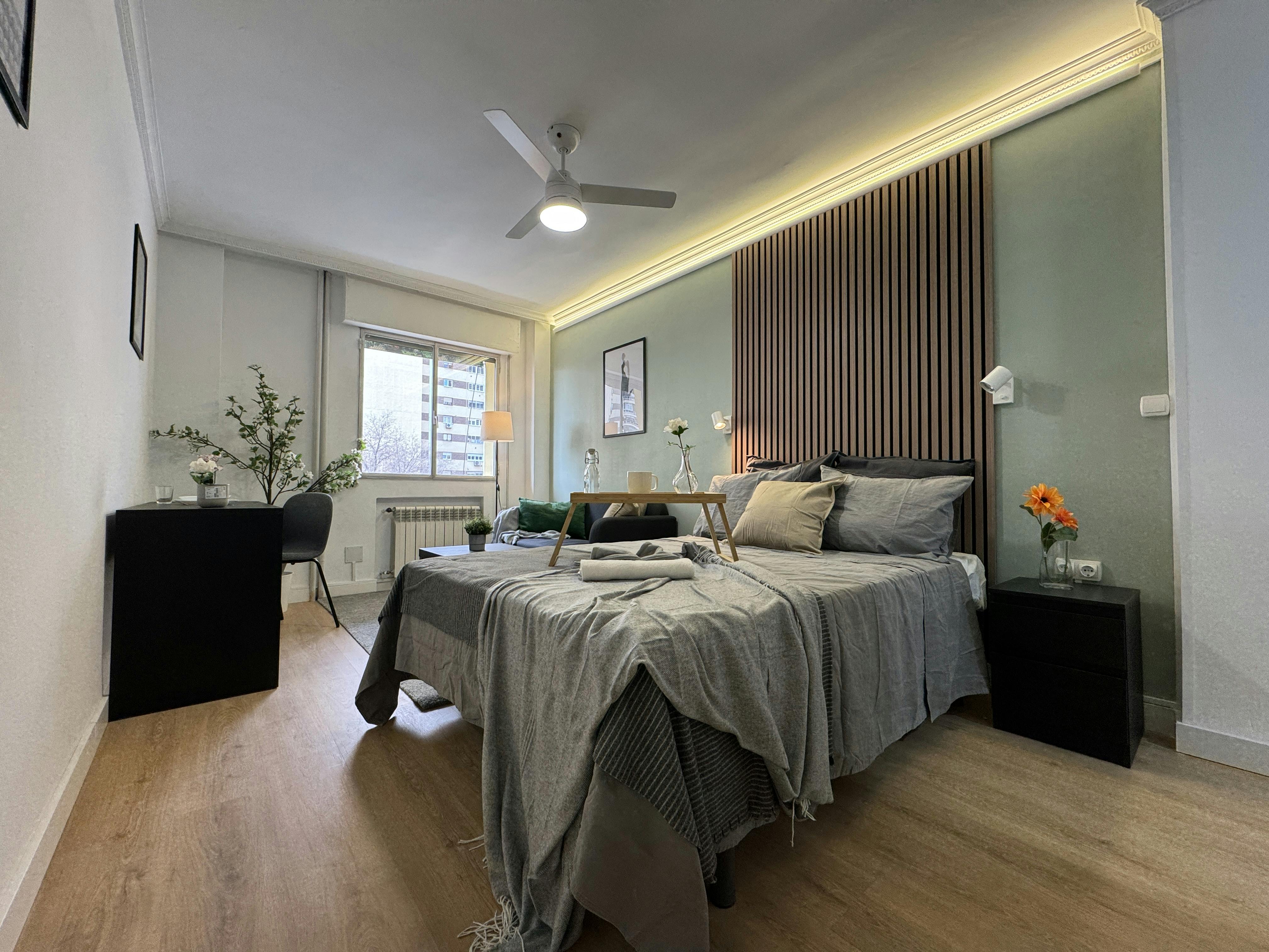 🏠 Piso totalmente reformado y amueblado con un diseño moderno y funcional 📍 Ubicación privilegiada en Madrid, con acceso rápido a transporte público y comercios 🛗 Edificio con ascensor para mayor comodidad 👨‍💼 Servicio de portería que aporta seguridad y asistencia Zonas comunes y servicios: 🍽 Cocina equipada con electrodomésticos nuevos, incluyendo lavavajillas y lavadora 🛁 Tres baños modernos, diseñados para la comodidad de todos los inquilinos 🌞 Balcón o terraza privada para disfrutar del aire libre 🔥 Calefacción y agua caliente de gas natural Habitaciones y estudio privado: Cada habitación ha sido renovada con: ✔ Cama doble para mayor confort ✔ Escritorio y estanterías, ideales para estudiar o teletrabajar ✔ Armario empotrado con amplio espacio de almacenamiento ✔ Ventana con luz natural ✔ Llave independiente para privacidad El piso también cuenta con un estudio privado, perfecto para quienes necesitan un espacio adicional para trabajar o estudiar. Servicios incluidos en el alquiler: ✅ Electricidad, agua y gas incluidos hasta un límite mensual ✅ Wifi de alta velocidad para una conexión estable ✅ Gestión y mantenimiento profesional por parte de (hidden) 🚫 No se permiten mascotas ni fumar en el piso 🔞 Edad permitida: Inquilinos entre 18 y 35 años Si eres propietario y quieres rentabilizar tu vivienda sin preocupaciones, (hidden) se encarga de todo por ti. Contáctanos y descubre cómo podemos maximizar el valor de tu propiedad. Deposit & Fees: Please note that the security deposit and administrative fees must be paid by direct bank transfer. Bank details will be provided upon booking confirmation...