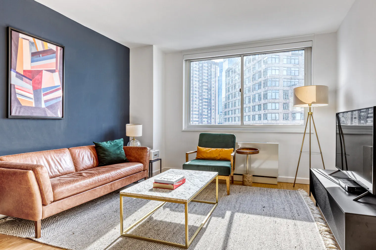 Please, note that the minimum stay for this accommodation is 32 days. Show up and start living from day one in New York with this roomy one bedroom apartment. You’ll love coming home to this thoughtfully furnished, beautifully designed, and fully equipped Lincoln Square home with stunning high floor views over the city. (ID #NYC372) Designed with you in mind Gorgeous furniture, fully equipped kitchen, smart TV, and a premium wireless speaker are just a few of the amenities you’ll find inside this one bedroom apartment. Ideally located in New York, you’ll find a lot to love outside as well. When you’re ready to relax, you’ll be happy to discover every bedroom comes with superior quality mattresses. We handle everything so you can simply show up and start living. Sleeping arrangements Queen Bed, 63in/160cm Amenities Building amenities unique to this one bedroom apartment include an on-site: - Doorman - Dryer in building - Elevator - Washing machine in building - Lounge - Pets allowed - Playroom Arrival and ongoing support Full Maintenance and Technical Support / cleaning requests at a click of a button. Other things to note Building amenities may have an extra cost. This apartment has flexible lease options, allowing you to book it for one month, a year, or more. Pets are welcome, though weight limits and breed restrictions apply and may incur fees. Completion of the Background check via a link is mandatory after the booking confirmation. All occupants, and anyone booking on an occupant's behalf, will be subject to a background check, which will include a criminal and credit history to the extent permitted by law. United States citizens, U.S. permanent residents, and non U.S. citizens with work visas must provide a social security number to complete the background check. Should guests not meet requirements or decide not to complete these screenings, the reservation must be cancelled by guests. In case of students, proof of University enrollment and a parents screening are mandatory for the confirmation of a booking...
