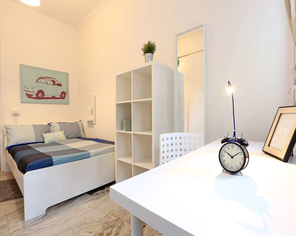 Single room in a shared apartment, composed by 6 bedrooms and 2 bathrooms. Of about 13 sqm with a single bed and a work station. With wifi, dishwasher, washing machine. Energy class: F, IPE 79.93 Kwh/Sqm year. Current tenants: 2: 20, Female, Student 3: 21, Female, Student 4: 27, Female, Student 5: 21, Female, Student 6: 20, Female, Student Please be aware that HousingAnywhere is an online booking platform. Therefore exchanging contact details and offering viewings is not possible. If you would like to reserve this accommodation, send me a booking request or a message and please mention your age and occupation. I look forward to talking to you! CONTRACT Please, note that to all our listings we apply fortnightly contracts. This means that If you check-in during the first half of the month, you will be charged for the full month. If you check-in during the second half of the month, you will only be charged for the second half. The second half of the month starts on the 16th. If you check-out during the first half of the month, you will only pay until the 15th of that month. If you check-out during the second half of the month, you will be charged the full month....
