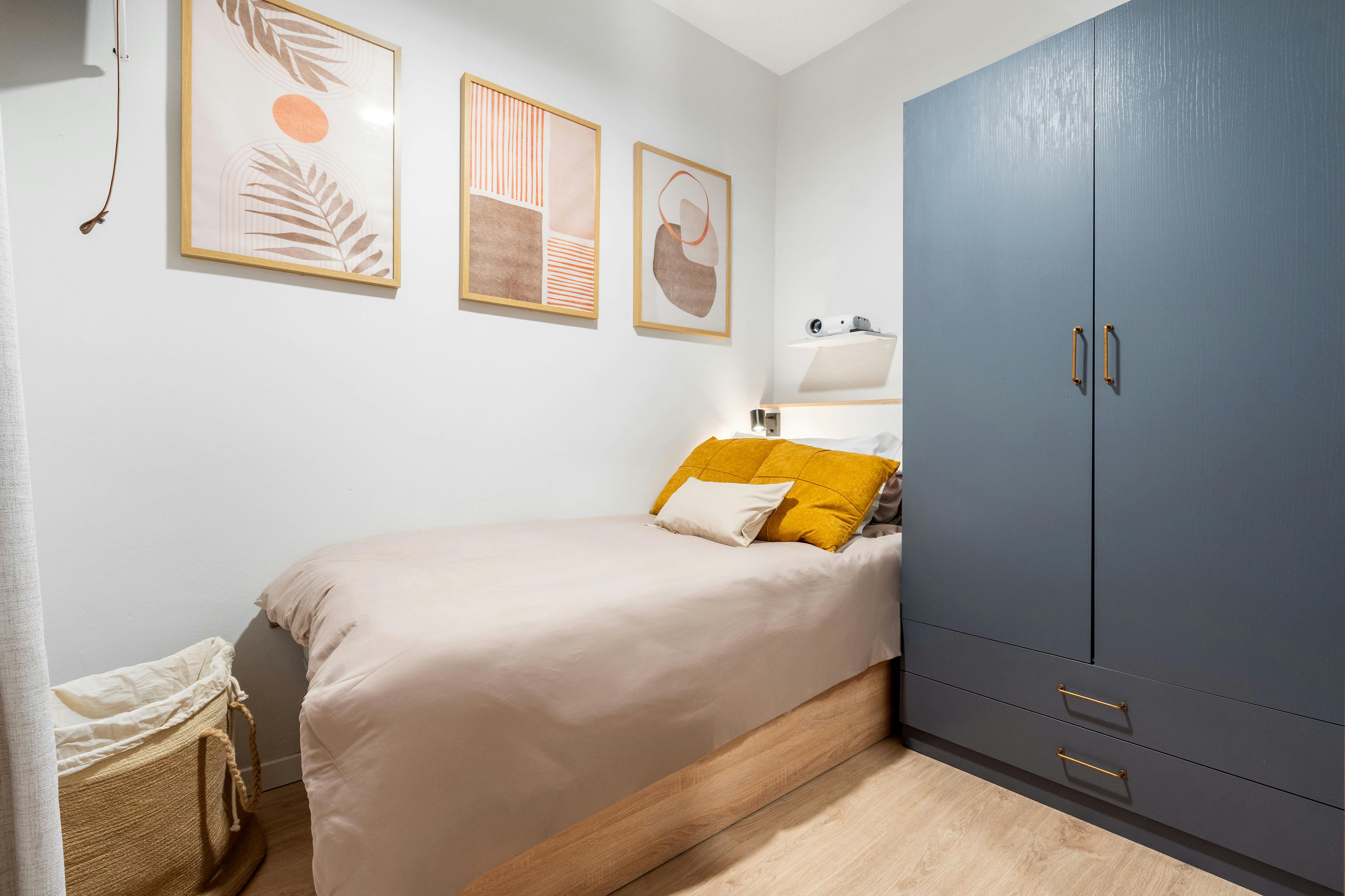 Discover your new home at Fort Pienc! Single room with a smart projector to watch your movies and series. Bathroom shared with one person. This newly renovated apartment with exterior views offers abundant natural light. With 4 rooms and 2 full bathrooms, you will enjoy a comfortable and spacious environment. Gas heating and fans in every room guarantee your comfort throughout the year. Additionally, the service of a professional coliving manager ensures a worry-free experience. The location is ideal: near the city center, yet far enough to avoid nighttime noise. The apartment comes with a fully equipped kitchen, refrigerator, microwave, oven, coffee maker, and toaster. Pets and couples are not allowed. Don't miss this opportunity to live in a vibrant area with all the amenities! What’s included? Bills included (gas, electricity, Internet, water) up to €50 Weekly cleaning of common areas (hallways, bathrooms, kitchen) 1GB Wi-Fi Smart projector Flexible contracts Maintenance service Fast and digital booking process: We will need your ID/Passport Student? University proof Month of booking Management fees (variable depending on length of stay, €200-500) Final cleaning (€200) Digital contract signing We look forward to welcoming you soon! No DE REGISTRO UNICO: ESFCNT(hidden)(hidden...