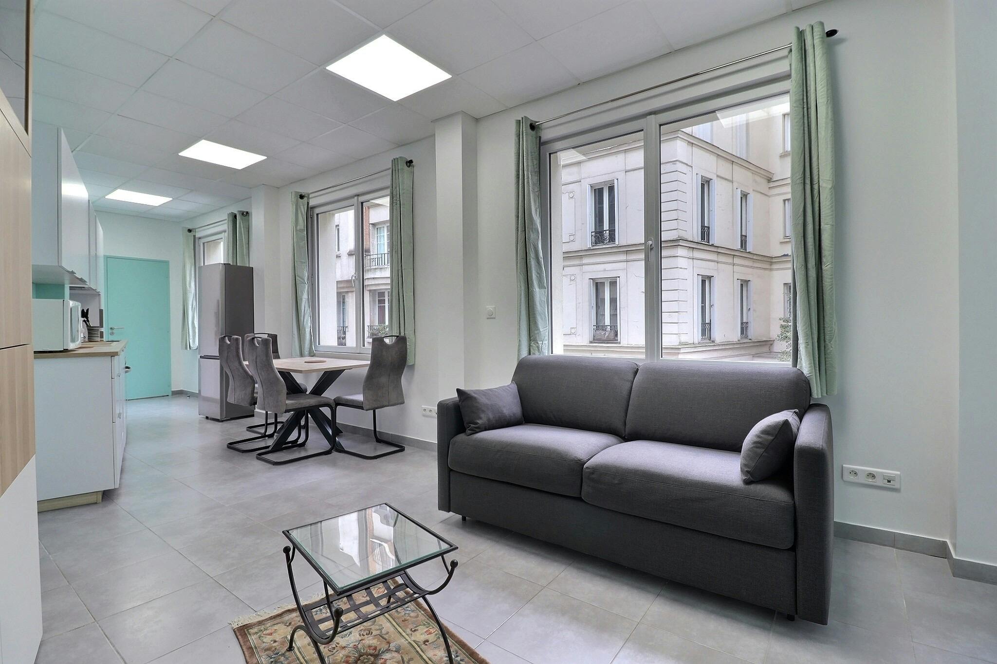 Furnished Apartment rental 1 bedroom - 38m2 - Alésia - Paris This 38 m2, 2-room apartment is located Rue de la Sablière in the 14th arrondissement, on the 2nd floor of a 21st century building without elevator, and can accommodate 2 people. This apartment is equipped with: dishwasher, TV, unlimited high-speed wifi internet access. Laundry only 30m away. The 21st-century building has no elevator. Access is secured by a Vigik door. The rent includes complimentary home insurance. IMPORTANT: Your booking will be confirmed ONLY when you will sign the lease and pay agency fees plus a security deposit after reservation on Housinganywhere. Agency fees will be 15% of the total rent, with a maximum amount of 1675 EUR for 12 months or less, and 8,5% of the total rent, with a maximum amount of 3350 EUR otherwise The refundable security deposit will be 1675 EUR if your rental is for 5 months or less, and 3350 EUR otherwise. If you want to pay the rent monthly, you will also have to provide documents such as payslips or tax notices showing that you or your guarantor can pay the monthly rent....