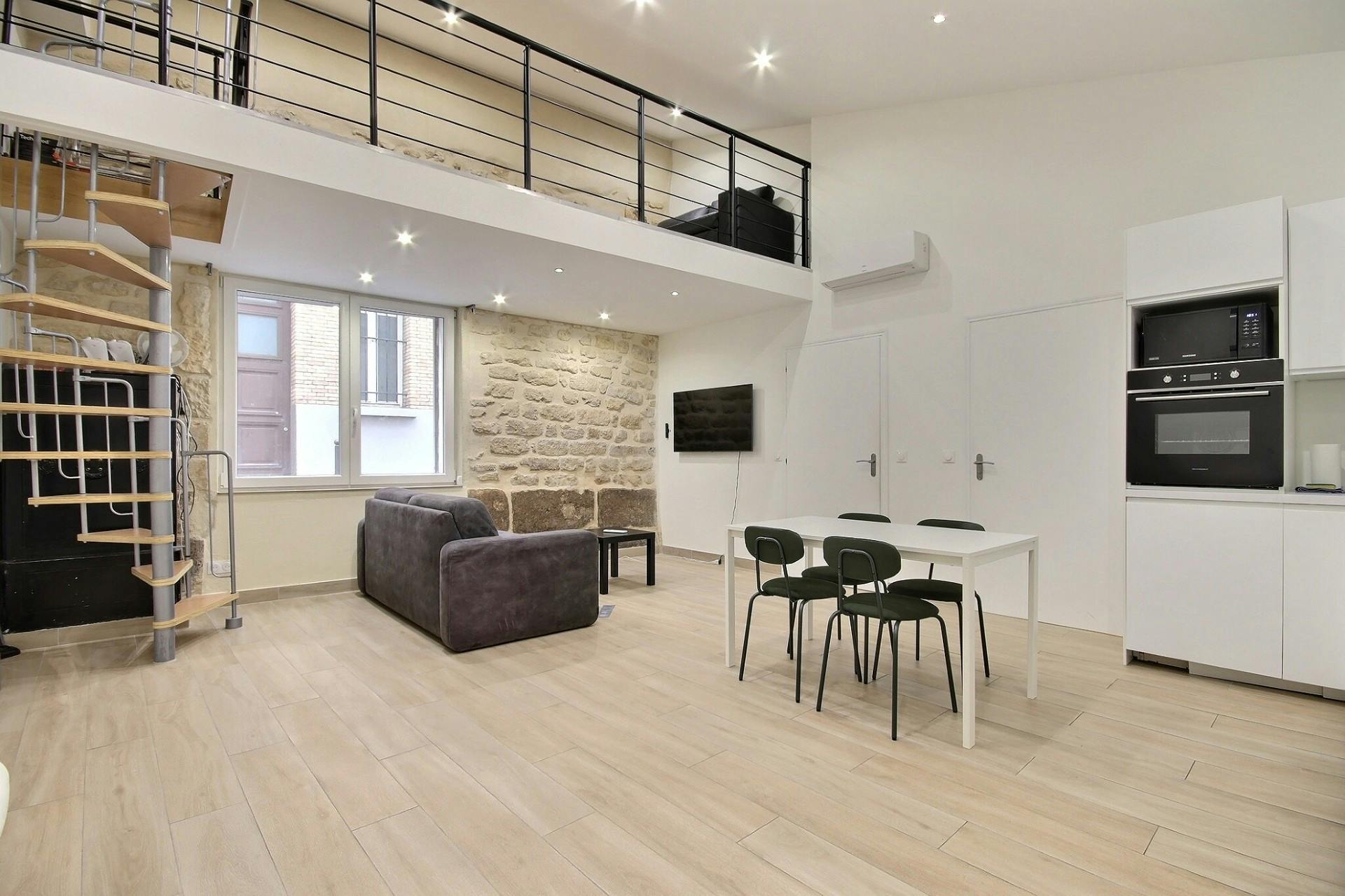 Furnished Apartment rental 2 bedrooms - 63m2 - Montorgueil - Paris This 3-room apartment is located rue Poissonniere in the 2nd arrondissement, on the ground floor of a building and can accommodate 4 people. This apartment is equipped with : Air conditioning, dishwasher, washing machine, cable channels, TV, unlimited high-speed wifi internet access. The building is equipped with: an entry code. The rent includes complimentary home insurance. IMPORTANT: Your booking will be confirmed ONLY when you will sign the lease and pay agency fees plus a security deposit after reservation on Housinganywhere. Agency fees will be 15% of the total rent, with a maximum amount of 3200 EUR for 12 months or less, and 8,5% of the total rent, with a maximum amount of 6400 EUR otherwise The refundable security deposit will be 3200 EUR if your rental is for 5 months or less, and 6400 EUR otherwise. If you want to pay the rent monthly, you will also have to provide documents such as payslips or tax notices showing that you or your guarantor can pay the monthly rent....