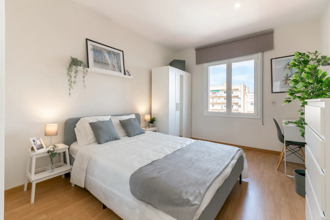 Excellence room with lots of natural light and exterior window. It is equipped with a double bed, bedside tables, chest of drawers, large wardrobe, desk with study chair, reading lamp and Smart TV. It is located next to a large full bathroom. It has shelves with decorative design elements, a wall clock and beautiful plants that make the room a harmonious space full of life. The room is a small studio where you will find everything you need to be happy in a comfortable environment with all kinds of details. The room has a size of 15m2. The room includes bed linen: Bottom sheet, pillows with their respective covers, duvet filling and blanket. It also includes maintenance cleaning every other week of the common areas, technical maintenance service, high speed internet and all utilities included up to the amount indicated in the contract. (M)️ METRO: The apartment has the following metro connections: 2 min from Entenca (L4) Coliving renovated, located in the Eixample area. The property has an area of 93 square meters. It has 3 bedrooms and a bathroom, a nice hall with a spacious living room, fully equipped kitchen, and dining area with access to the water area with washer dryer. The house has laminate flooring. The access to the building is adapted for people with reduced mobility, and has concierge service. In short, a perfect place to live in Barcelona and enjoy all the services, with connection at the door of the building with metro line L5, bus lines 19, 33, 34, D50 and H10, and also a bicing station. About Eixample Esquerra This is one of the most central areas of the city, considered by many, the heart of Barcelona with a large collection of modernist buildings. A highly sought after area with exclusive penthouses and fabulous apartments in regal estates. Many of the buildings in the Eixample are the work of modernist architects who have preserved fantastic original elements; high ceilings, tiled floors with mosaics, cornice ceilings and lots of natural light. Avenida Diagonal, Paseo de Gracia and Rambla Cataluña, with their select international boutiques, prestigious offices and some of the best restaurants in Barcelona, complete the offer of this district, excellently linked to public transport and surrounded by a wide range of tourist attractions....