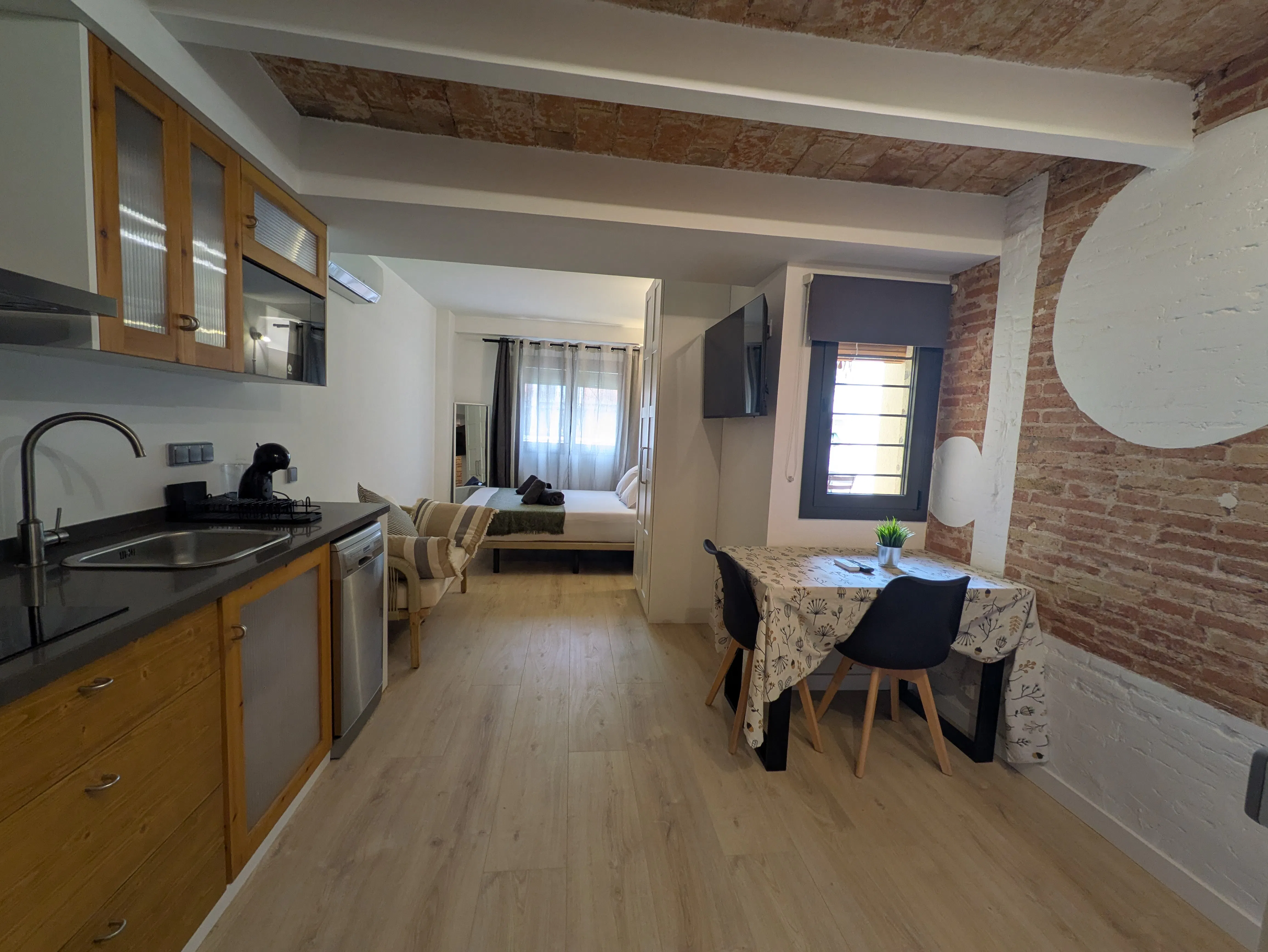 Piso con mucho encanto situado en edificio recientemente reformado, al lado de Plaza España. Totalmente equipado. Tranquilidad y mucha luz durante todo el día. Espacio optimizado con comedor con cocina integrada, cama de matrimonio muy comfortable de 150x200cm & armario. Cuarto de baño con ducha. Tiene una terraza compartida únicamente con otro apartamento de la misma planta. Wifi de alta velocidad y AC/Bomba de Calor. El precio incluye IVA y consumo de agua y electricidad hasta un máximo de 100€ mensuales. Está justo al lado de Plaza España, probablemente una de las mejores ubicaciones de Barcelona en términos de movilidad (Bus acceso directo Aeropuerto, Metro Línea L3 acceso centro ciudad y zona universitaria, a 10min de la Estación Central de Trenes de Sants, 15 minutos andando al centro de la ciudad......