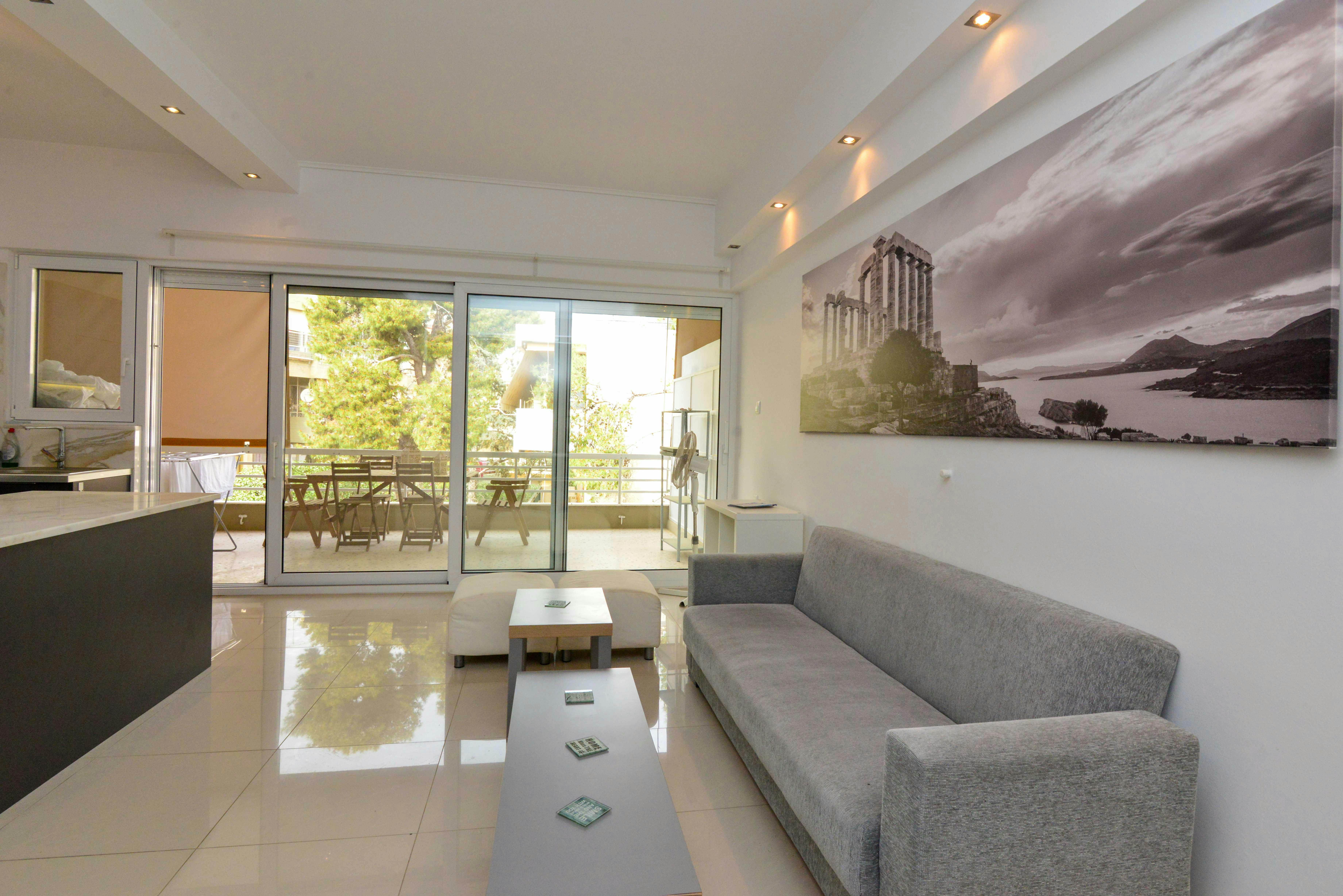 Kick back and relax in this calm, stylish space.Only 2 -4 minutes on foot from the beach. A stylish 55 Sq.m apartment renovated in 2021 Discover real Athens and its riviera, in one day.Enjoy privacy, in a calm neighbourhood. Athens centre is 30 min drive and parking on the street is free. Experience the public or private beach from May to November. It has 1 bedroom with air condition, 1 bathroom with washing machine, 1 large balcony, 1 living room air fan, 1 kitchen, Wi-Fi Super Market, shoprs , restaurants within 2-3 minutes walking distance Limited consumpiton of electricity until 500kwh per mont...