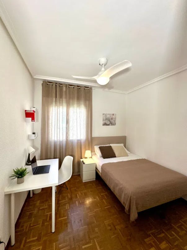 🏡 Cozy room in the heart of Madrid! 🛏️ About your room: This beautiful bedroom offers a bed, a wardrobe , a TV screen and a desk. The windows allow a lot of natural light in, making this room vibrant and perfect for studying or working. The room has a lock on the door, so you can enjoy your privacy. 🍳 About the apartment: The modern kitchen, which you share with other tenants, is fully equipped and cooking utensils are available. The shared bathrooms have a standing shower, a sink, a washing machine and a toilet .From the kitchen , you can access a balcony with chairs. A cleaning service is provided for all common areas. 📍 About the area: The apartment is located in La Guindalera. This neighbourhood is ideal for those seeking a calm, well-connected area. La Guindalera is well-connected by the Madrid Metro, with key stations including Manuel Becerra (Lines 2 and 6), Ventas (Lines 2 and 5), Diego de León (Lines 4, 5, and 6), and Avenida de América (Lines 4, 6, 7, and 9). Please note: All costs ( gas, water, electricity ) are included but if your use exceeds 35 euros a month, you will be charged for the difference. For example, if your use of water is worth 45 euros, you will be charged 10 euros. Contact us for more information!...