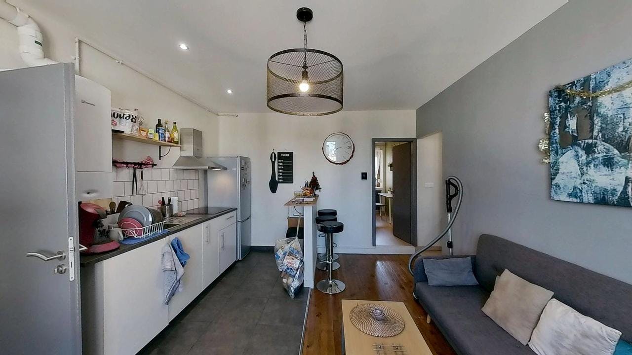 Nous vous présentons cette colocation de 3 chambres de 61 m2 située au 75 Avenue de la Libération à Nancy. 🏠 LES ESPACES COMMUNS La pièce de vie est aménagée avec un canapé et une table basse, offrant un espace de détente agréable. Internet est inclus dans le logement. La cuisine ouverte est équipée d’un micro-ondes, de plaques de cuisson, d’une hotte, d’un évier, d’un réfrigérateur avec compartiment congélateur, ainsi que de nombreux rangements et ustensiles de cuisine. Une machine à café est également mise à disposition. On trouve aussi un mange-debout avec des tabourets, pratique pour vos repas et vos moments conviviaux. La salle d’eau comprend une douche, un meuble vasque avec miroir, un lave-linge et des rangements pratiques. Les WC sont séparés pour un meilleur confort au quotidien. Un local à vélo est également associé à ce logement. 📍 LE QUARTIER Côté transports en commun, plusieurs options sont disponibles à proximité : Le bus 54R410 Le bus Corol Le tram T2 Toutes les commodités sont accessibles à pied dans un rayon de 15 minutes : Un Carrefour Express à seulement 20 mètres Un (hidden) à 8 minutes à pied Le centre-ville, avec ses commerces, boutiques et restaurants, est accessible en 20 minutes à pied ou 9 minutes en vélo 🛏️ LA CHAMBRE La chambre est meublée d'un lit double, d'un bureau avec chaise de bureau, d'un grand placard de rangement et de deux tables de chevet. -------- Bail individuel à la chambre. Pas de caution solidaire. Chacun est libre de partir quand il veut sans se soucier des autres colocs, dès le moment où il respecte un mois de préavis. Éligible aux APL. Les informations sur les risques auxquels ce bien est exposé sont disponibles sur le site Géorisques : (hidden) Montant estimé des dépenses annuelles d'énergie pour un usage standard : 1081 € par an. Prix moyens des énergies indexés sur l'année 2021 (abonnements compris...