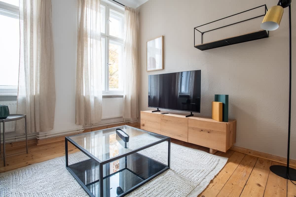 This stunning furnished one bedroom apartment features contemporary design, a fully equipped kitchen, and a cozy living area with breathtaking views. Perfectly situated, you'll have easy access to everything that makes Berlin vibrant and exciting! Dive into the dynamic energy of Friedrichshain, a lively district pulsating with creativity and diversity. Located in the former East Berlin, this neighborhood is renowned for its eclectic street art, trendy bars, and thriving nightlife. Explore the iconic East Side Gallery, savor international cuisines at bustling food markets, and immerse yourself in the bohemian atmosphere of RAW-Gelände. Friedrichshain is the beating heart of alternative culture, where every corner tells a story of resilience and reinvention...