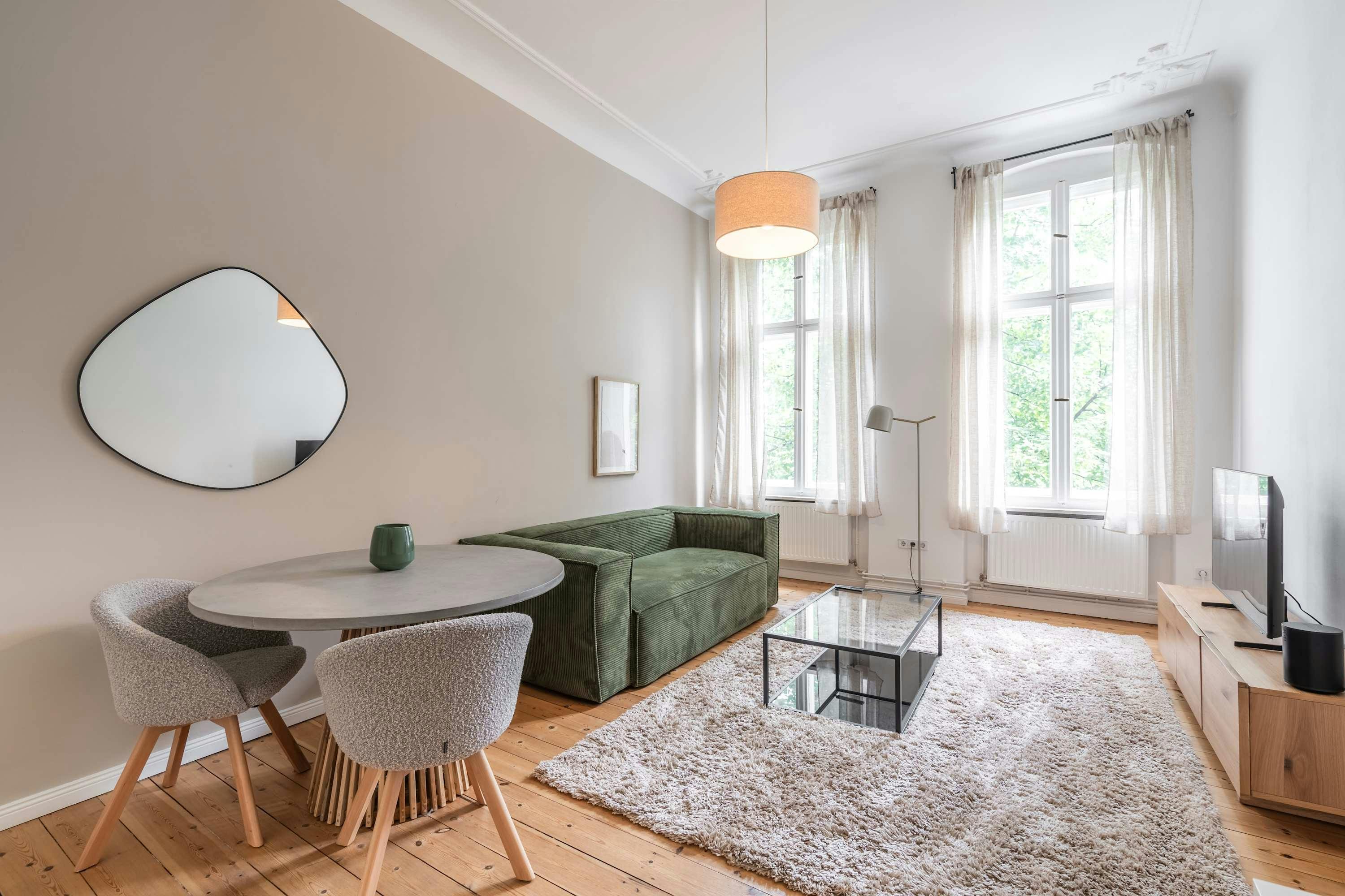 This stunning furnished one bedroom apartment features contemporary design, a fully equipped kitchen, and a cozy living area with breathtaking views. Perfectly situated, you'll have easy access to everything that makes Berlin vibrant and exciting! Dive into the dynamic energy of Friedrichshain, a lively district pulsating with creativity and diversity. Located in the former East Berlin, this neighborhood is renowned for its eclectic street art, trendy bars, and thriving nightlife. Explore the iconic East Side Gallery, savor international cuisines at bustling food markets, and immerse yourself in the bohemian atmosphere of RAW-Gelände. Friedrichshain is the beating heart of alternative culture, where every corner tells a story of resilience and reinvention...