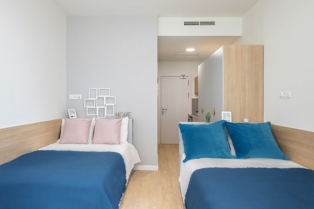 🔸Cleaning room, change of sheets and towel included in the price. It is weekly. ✨ Doble Studio Standard (Price per person) Double Studio with shared kitchen and bathroom, fully furnished and equipped with: - Bathroom - Kitchen: fridge, microwave, sink, and storage - Study area - Dining area Common areas: - Study and leisure rooms - Outdoor swimming pool - Gym - Multi-sports court - Paddle tennis court - Landscaped picnic area 🏦 THE RESIDENCE The vast 5-acre site is ideally located right next to the University of Granada's Cartuja Campus and is less than a five-minute walk to the main entrance. It is also a very short walk to the city center and is a superb, new student scheme for students living and studying in Granada. This student residence in Granada consists of brand-new, modern facilities and consists of 354 bedrooms all with modern ensuite bathrooms. There is a mix of studio rooms, single rooms, two rooms with shared kitchenettes, and a variety of room types to suit different tastes and budgets. The state-of-the-art communal and games areas are designed to make student living a social and enjoyable experience, they are a place for students to meet and enjoy their free time. The campus offers facilities for a fully catered stay as well as the option to go self-catered and provides a variety of superb experiences for students living at Amro Granada. Among its facilities, the residence offers a restaurant with a terrace, where you can enjoy our meal plans in a punctual way. All rooms are fully furnished and equipped, 100Mb Wi-FI, cleaning, and linen, and all expenses are included. Pick your preferred room type based on your needs. Do you prefer cooking for yourself or having a delicious meal made for you? Choose the level of service which works for you. 📜 SERVICES INCLUDED IN THE RENT: - Air conditioning and heating - All supplies, light, and electricity are included. - Wi-Fi in the entire building and Internet via cable in all rooms. - Room cleaning once a week, and daily in the common areas. - All bed linen and towels are changed weekly - Use and access to all facilities of the building, - Gym, study rooms, cinema room, swimming pool and terrace with views of Granada. - Access Control, 24-hour reception, CCTV cameras service. - Security CCTV. - private parking 🎀 OTHER SERVICES AVAILABLE (extra cost): - Personal laundry (the residence has a laundry with washers and dryers where you can clean your personal clothes). - Personal hygiene products. - Reprographic services. 🥗 MEAL PLANS (optional): Half Board Includes breakfast service and a lunch or dinner service to choose from and Sunday dinner. (EXTRA COST) Full board includes breakfast, lunch, and dinner services from Monday to Friday, Saturday brunch and Sunday dinner. (EXTRA COST) 💲❗ After the reservation is completed, you will be required to pay the deposit and other fees through our secure payment system...