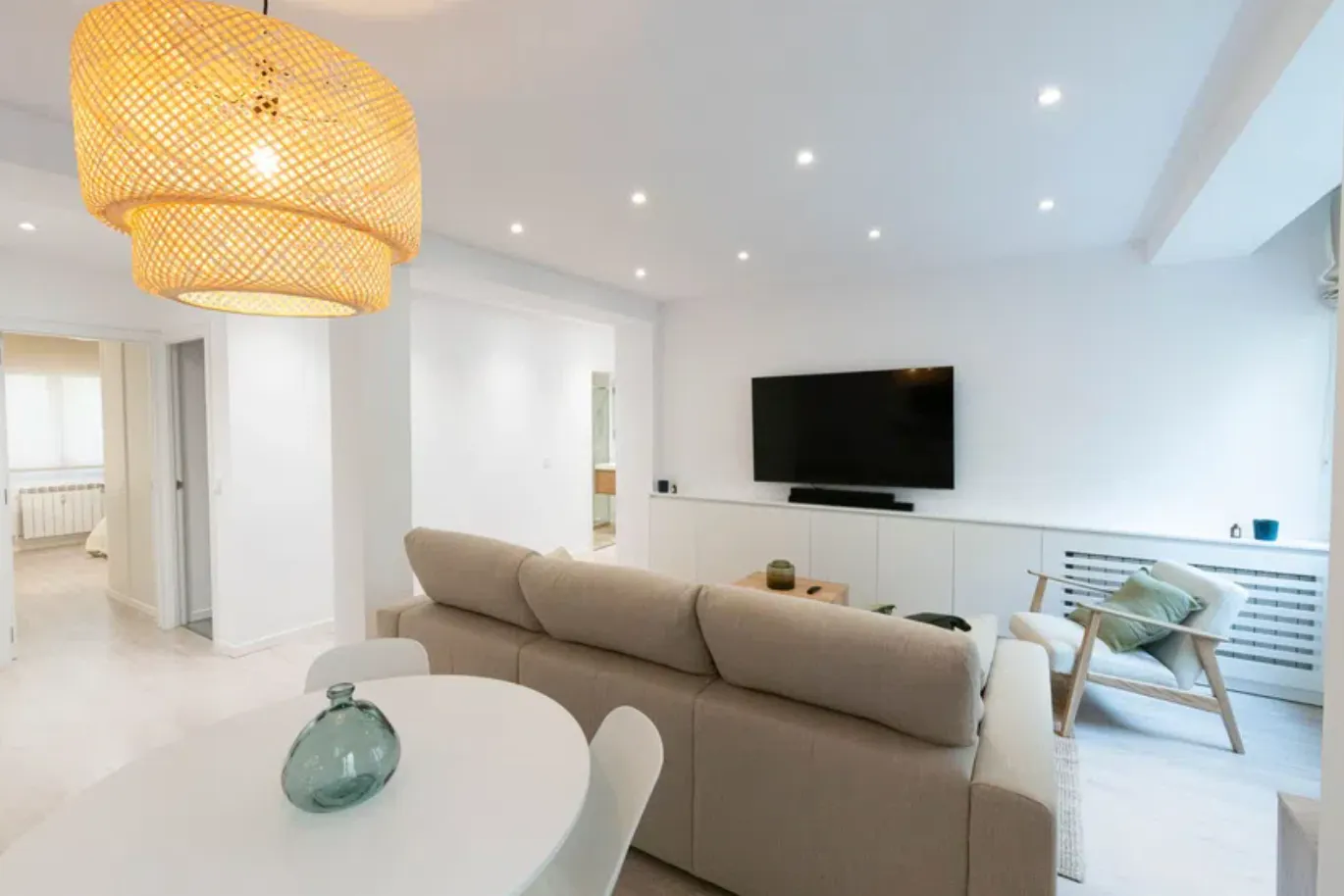 ✨ CORPORATE RENTAL | 4 BEDROOMS – 2 FULL BATHROOMS | FULLY EQUIPPED | PREMIUM FINISHES | BRIGHT & SPACIOUS ✨ Looking for a stylish, move-in ready apartment in one of Madrid’s top neighborhoods? 🏙️ This modern and elegant 117 m2 corporate flat, freshly renovated with premium finishes, is your perfect match. Located on the prestigious Calle Orense, right in the heart of the city’s financial district, this space offers comfort, convenience, and a touch of luxury — all in one! Step inside and feel the difference 🌟 Designed to maximize natural light and open space, the apartment features a cozy living room with a flat-screen TV and a comfy sofa 🛋️, as well as a sleek, fully equipped kitchen with top-of-the-line appliances 🍽️ — perfect for both quick breakfasts and relaxed dinners. 🛏️ With 4 bedrooms (1 double + 3 singles), each room is spacious, stylish, and fully furnished with comfortable beds, large wardrobes, and everything you need to feel right at home. 🛁 The 2 modern bathrooms ensure maximum comfort and privacy — ideal for sharing professionals. 💡 Utilities included (water, electricity, gas, WiFi) up to a monthly cap — so you can enjoy your stay with zero hassle. Just unpack and start living! 📍 Location, location, location You’ll be just minutes away from metro stations Santiago Bernabéu and Nuevos Ministerios, with easy access to AZCA, top corporate hubs, and all the best that Madrid has to offer — from gyms to supermarkets, restaurants, and El Corte Inglés at Castellana 🛍️. Whether you're in town for business or a mid-to-long-term stay, this flat is a premium lifestyle choice for professionals who value comfort, design, and location. Ready to move in. Worry-free. Fully equipped. In the heart of it all. 💼🏡 Your next home in Madrid is waiting...
