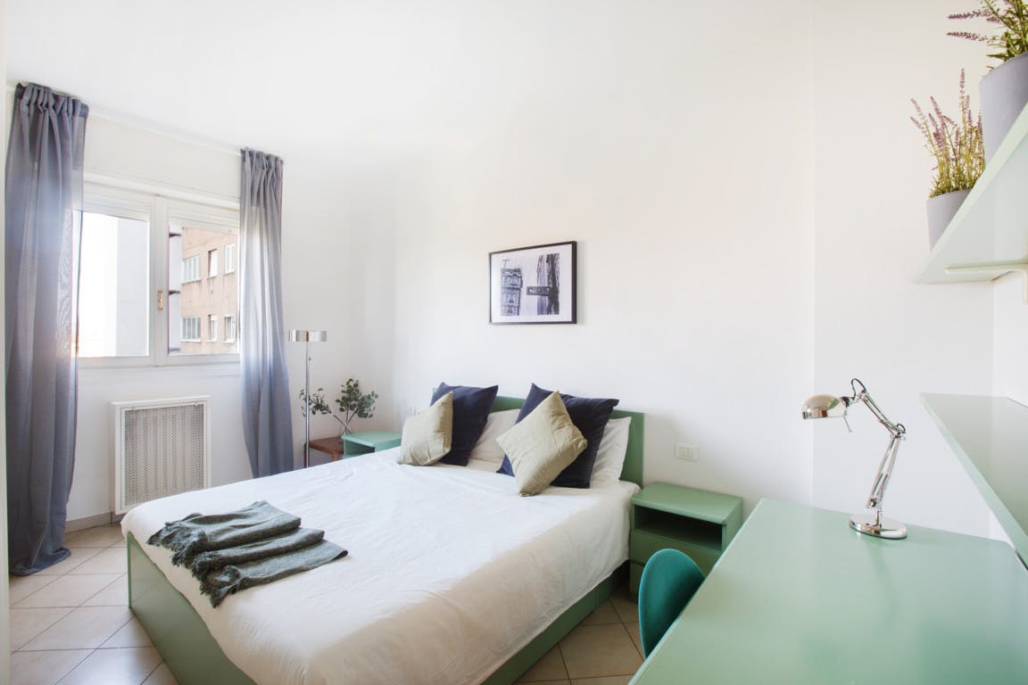 ROOM Cozy room in San Siro in a newly renovated apartment. The room has all that you need to live, work and study here. From appliances to linen, internet and more. APARTMENT The apartment is designed in a modern style with spacious rooms and a great kitchen. All costs are included in the rent, including bills, internet, and more! PROPERTY A stately building located within a very quiet street albeit in close proximity to San Siro Stadium. The building is very well cared, thanks in part to the presence and care of the buildings janitor, who watches over condominium decorum every day...
