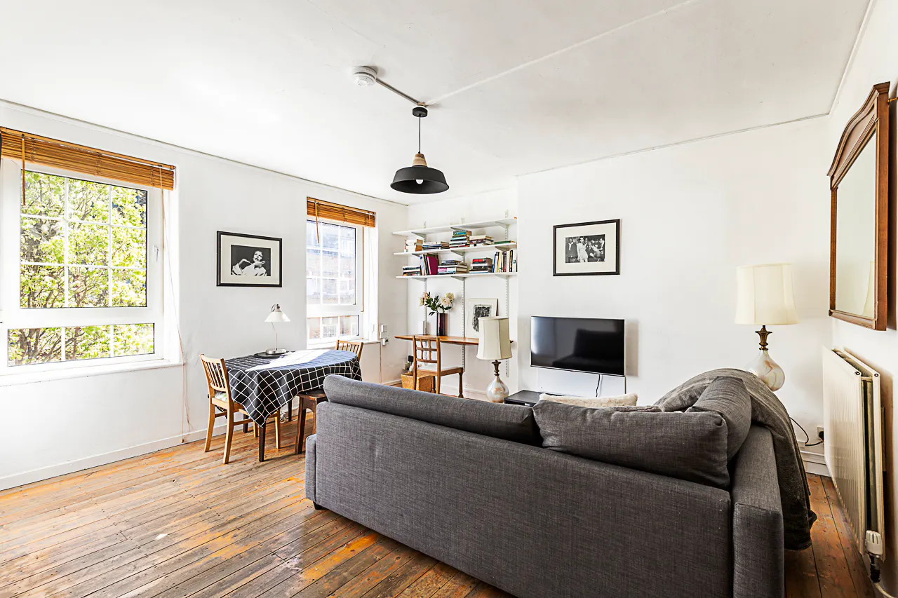 Tucked away on the edge of the City of London, this inviting flat is a spacious, uncluttered haven in the heart of the capital. Spread over two levels and located on the third and fourth floors, the duplex is filled with natural light throughout the day. Overlooking a quiet courtyard with mature trees, it offers calming views of the city skyline beyond. Whether you're in town for business or a city break, this warm and comfortable space is a fantastic base for exploring London while enjoying a home-away-from-home atmosphere. With over seven hundred square feet of living space, this light and airy flat combines a cool boho style with practical touches. White walls, stripped floorboards, and plenty of open space give it a relaxed character. The upper level houses a generously sized bedroom with a low double bed and blackout blinds, while the large bathroom includes a deep tub with an overhead shower – ideal for everything from a quick freshen-up to a long soak after a busy day. Downstairs, the living room features a comfortable L-shaped sofa and a double sofa bed, making the flat suitable for couples, solo travellers, or friends sharing a trip. The living area enjoys excellent morning light and has wooden Venetian blinds to filter the sun throughout the day. There’s a dedicated dining space and a well-equipped kitchen with all the essential appliances to prepare simple meals. For remote workers, a comfortable desk area and high-speed internet provide everything needed for a productive work-from-home setup. The flat is well-insulated, with large radiators for chillier evenings and openable windows to let in fresh air when the sun’s shining. **Disclaimer** as of 7th July 2025 there are internal construction works in the building going on for the foreseeable, we envisage this going into 2026. We offer custom pricing for any duration, with rates varying based on exact move-in and move-out dates. Rates start from 3696...
