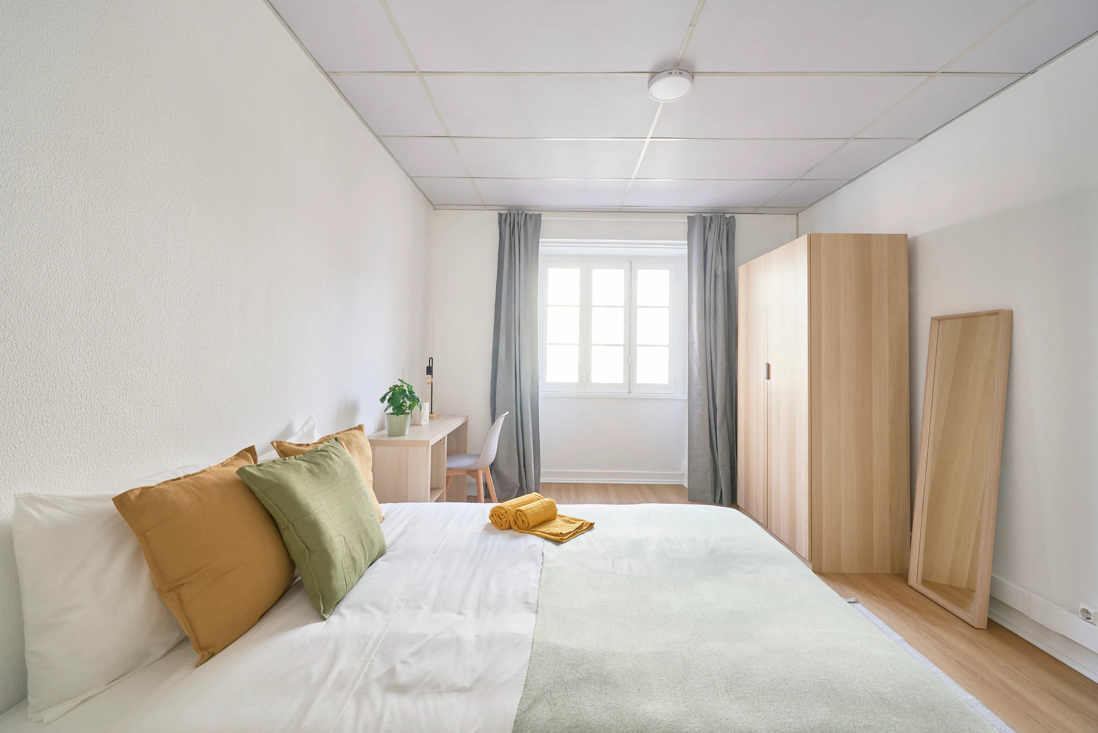 Zone: Rua Alexandre Herculano is a charming, tree-lined street located near Avenida da Liberdade, one of Lisbon’s most prestigious areas. It features a mix of residential buildings and local businesses, contributing to its vibrant and welcoming atmosphere. The street is well-connected, with easy access to nearby parks and public transport. Metro: 4 min walk (300m) Marquês de Pombal Bus: 3 min walk (200m) R. Sta. Marta Train: Not applicable Flat description: 7-bedroom flat on the 2nd floor, featuring 3 WCs. The kitchen is fully furnished and comes equipped with a washing machine for your convenience. The whole flat boasts plenty of natural light for a cozy environment and building includes a lift for easy access. Room: This lovely room is fully furnished and features a dedicated working area complete with a desk, chair and a lamp. It also includes a wardrobe, a bedside table with an accompanying lamp and a mirror. The room boasts a comfortable double bed measuring 140 cm in width and 200 cm in length. This room has a window facing the front side of the building which can make it noisier at times but makes up for it with plenty of exposer to natural light. As a disclaimer we want to inform you that the flat comes furnished as shown in pictures or with equivalent replacements. Others: - The rent includes 35€/per person of included bills (extras will be deducted from the security deposit). - A weekly cleaning of the common areas is also included in the rent. - The rooms come as shown in the pictures or with the equivalent replacements. This applies for: towels, pillows and pillowcases, furniture, lamps, and all other amenities. - The rooms are for individual use, except if we have a previous agreement. - Visits are allowed, but they need to be communicated and approved in a timely manner. - All check-ins are done in person, require ID and the security deposit paid. - Check-in times during business hours are free; any other times will have to be accepted by us, and there could be a charge. - We do not allow smoking or pets in the flat. - Mandatory fee: The amount of €55 for a single bed or €65 for a double bed will be deducted from the security deposit, which corresponds to the basic linen kit that includes: sheets, pillowcases and towels. This kit can be taken by the guest at the end of their stay....