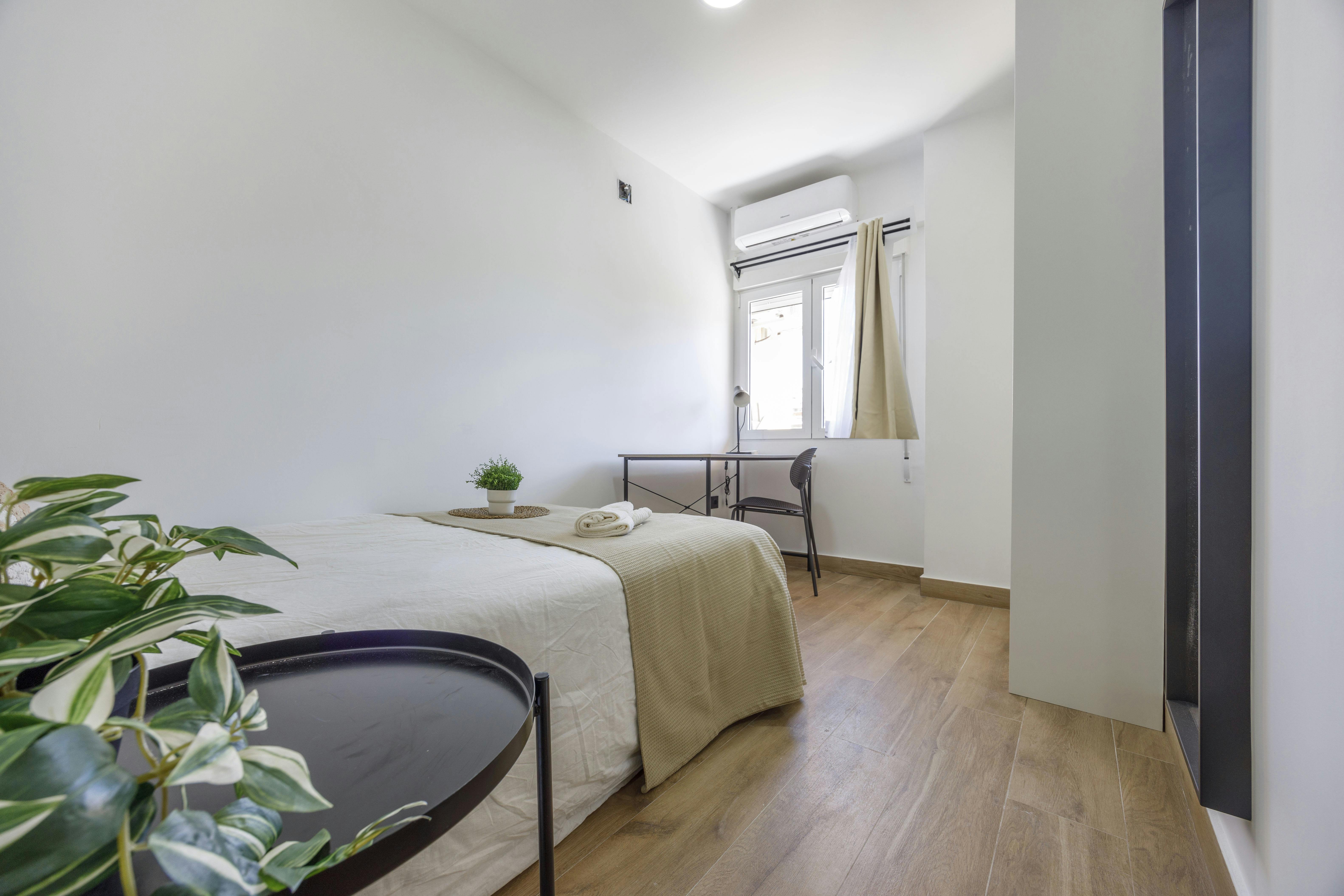 ROOM: Double room in the center of Valencia. It is a very good option if you are a student or young worker and you want to spend some time in the beautiful city of Valencia. It is a fully equipped and furnished room: - Bed 120 x190cm - Wardrobe - Desk with lamp and chair - Bedside table - Window with exterior views - Lock for your privacy - AC APARTMENT: The flat is 100m2 and has 5 bedrooms and 2 full shared bathrooms. The common areas are really nice, with a fully equipped kitchen with: - Ceramic hob - Refrigerator - Oven - Microwave oven - Crockery and cutlery EXPENSES: The rental price includes internet and a weekly cleaning of the common areas. The costs of utilities are as follows: -Water: 10€/month -Electricity: 40€/month, if any month the consumption is more than this, the difference will be paid separately. In this case, the expenses are shared equal parts between the tenants. CLEANING SERVICE: We offer a free cleaning service once a week of the communal areas. It is the tenant's responsibility to keep the flat clean, tidy and in good condition. Our cleaning service is mainly to help you with the cleaning, but it is important to keep everything clean. Cleaning products must be provided by the tenants. You can find a list of the necessary cleaning products in the flat. BEDROOM CLOTHING: For a hygienic reason, we do not provide any bed linen, neither pillow, duvetor duvet cover. CHECK IN AND CHECK OUT: Check in will take place at the office. Once your booking is confirmed, you will receive details of how to get to the office, but it is within easy reach of the airport. We will meet you here to complete the payments, sign the rental contract and provide you with a set of keys to your new home. Check-in hours will be from 16:00 to 20:00. If you arrive in Valencia earlier you can leave your luggage in my office in the meantime. If you arrive later than 8:00PM we will leave the keys at a 24H point, where you can pick them up. Check out will be at the latest on the last day of the rental contract at 11:00AM. If your flight is after this time, you can leave your luggage here at the office free of charge...