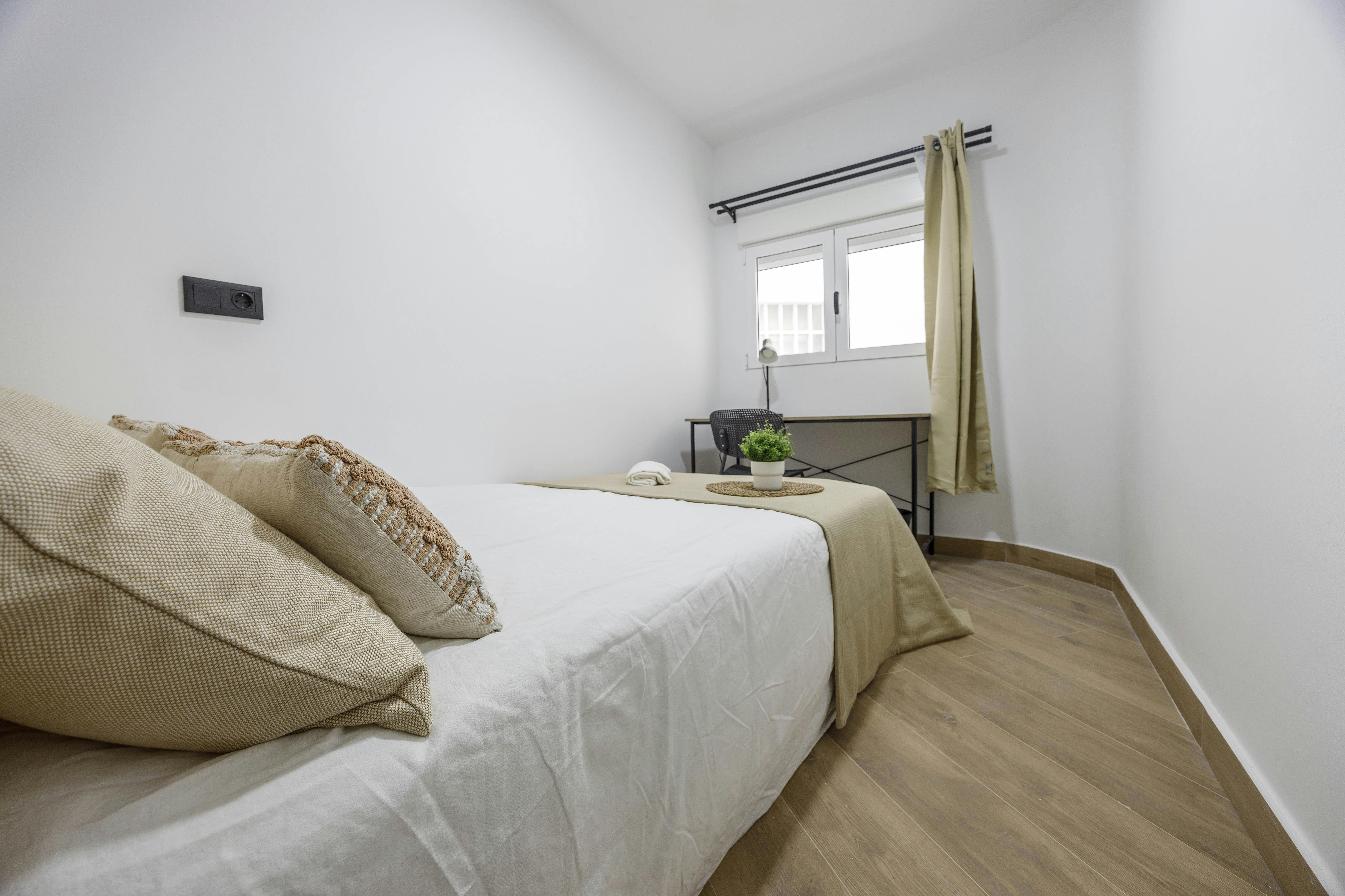 ROOM: Double room in the center of Valencia. It is a very good option if you are a student or young worker and you want to spend some time in the beautiful city of Valencia. It is a fully equipped and furnished room: - Bed 120 x190cm - Wardrobe - Desk with lamp and chair - Bedside table - Window with interior views - Lock for your privacy - AC APARTMENT: The flat is 100m2 and has 5 bedrooms and 2 full shared bathrooms. The common areas are really nice, with a fully equipped kitchen with: - Ceramic hob - Refrigerator - Oven - Microwave oven - Crockery and cutlery EXPENSES: The rental price includes internet and a weekly cleaning of the common areas. The costs of utilities are as follows: -Water: 10€/month -Electricity: 40€/month, if any month the consumption is more than this, the difference will be paid separately. In this case, the expenses are shared equal parts between the tenants. CLEANING SERVICE: We offer a free cleaning service once a week of the communal areas. It is the tenant's responsibility to keep the flat clean, tidy and in good condition. Our cleaning service is mainly to help you with the cleaning, but it is important to keep everything clean. Cleaning products must be provided by the tenants. You can find a list of the necessary cleaning products in the flat. BEDROOM CLOTHING: For a hygienic reason, we do not provide any bed linen, neither pillow, duvetor duvet cover. CHECK IN AND CHECK OUT: Check in will take place at the office. Once your booking is confirmed, you will receive details of how to get to the office, but it is within easy reach of the airport. We will meet you here to complete the payments, sign the rental contract and provide you with a set of keys to your new home. Check-in hours will be from 16:00 to 20:00. If you arrive in Valencia earlier you can leave your luggage in my office in the meantime. If you arrive later than 8:00PM we will leave the keys at a 24H point, where you can pick them up. Check out will be at the latest on the last day of the rental contract at 11:00AM. If your flight is after this time, you can leave your luggage here at the office free of charge...