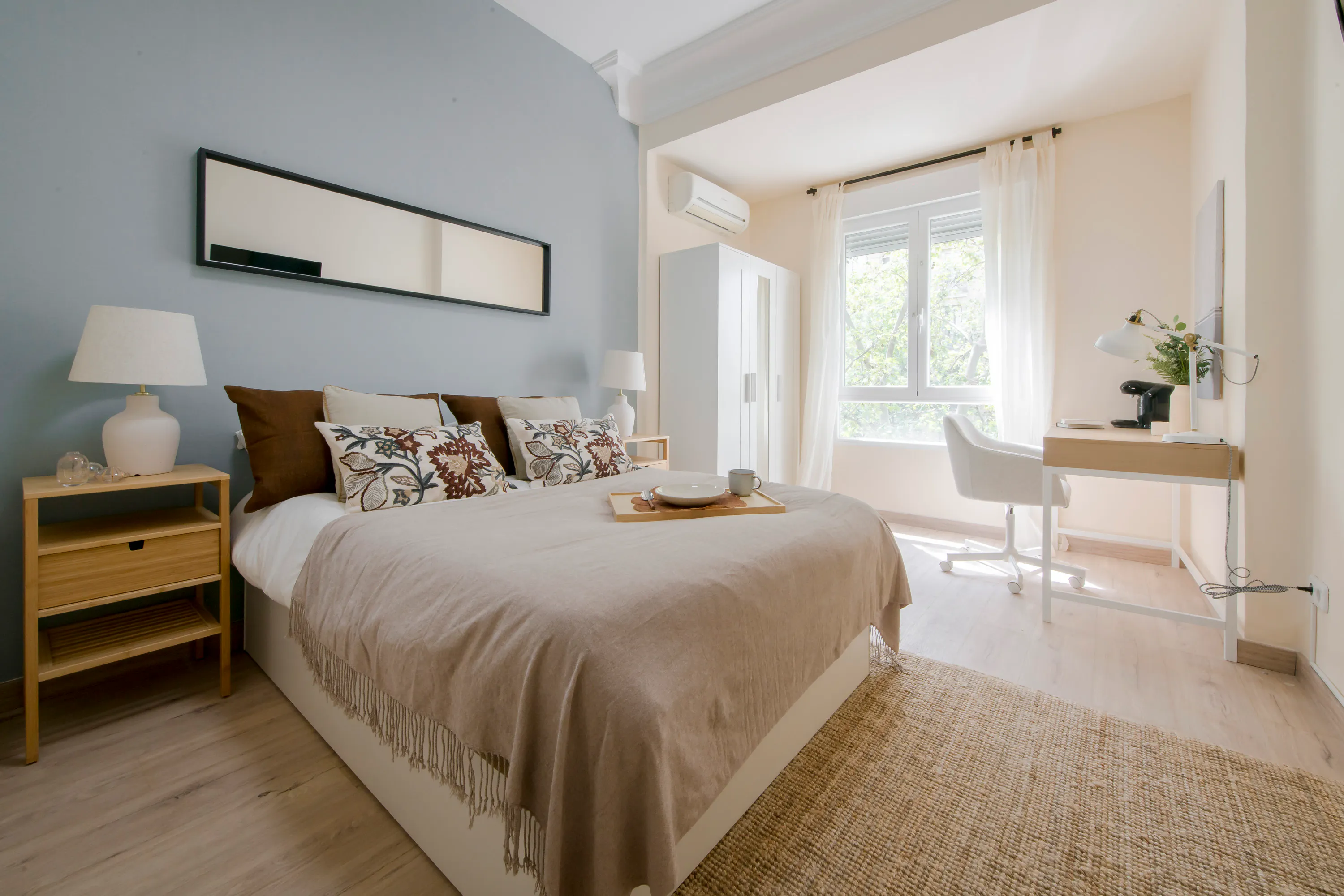 💢💢💢 This bedroom comes with: ✔Exterior window 🛏Type of bed: 135x190 cm We present you a beautiful room in Calle Ríos Rosas 17, Madrid. The property consists of: 2 full bathroom, fully equipped kitchen (fridge, oven, microwave, ceramic hob, utensils) and 7 bedrooms in total. The room has bed with canapé, mirror, coffee maker, wardrobe, desk, fan, smart tv so you can enjoy your favourite channels and streaming platforms. The price includes: - Maintenance technician - Contract management - Cleaning of the common areas once a week - Flexibility of contracts - Rooms with high quality standards - Lockable door - Customer service - All utilities included (water, electricity, gas and wifi) - Kitchen utensils. Unbeatable location, just a few minutes away you can find bus stops, Metro Station (Rios Rosas), supermarkets and shops, all together with a spectacular social and cultural life. We are waiting for you! 🔔Administration fee must be paid by cash (Other types of payments, please contact us) 🔔Profile: 18-35 years (older ages may be accepted case by case) 🔔A weekly cleaning in common areas is included in the price. 💢💢💢...