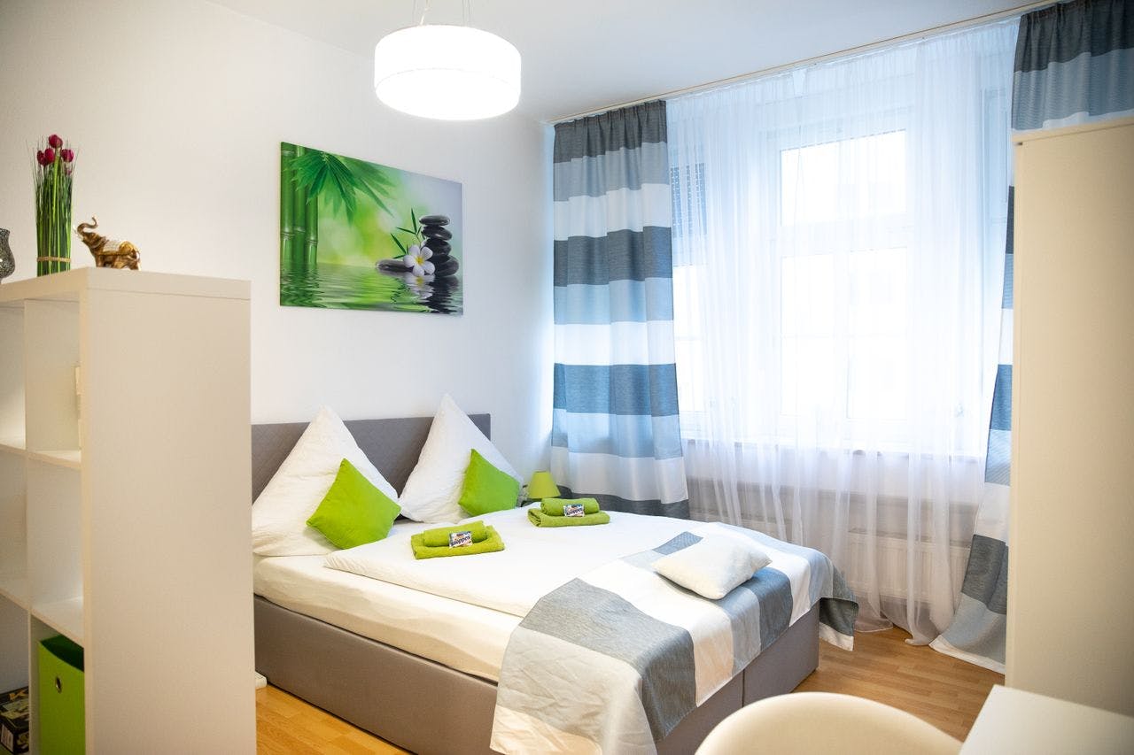 Exklusive Wohnung in Nürnberg in der Nähe von Annehmlichkeiten Diese schöne und modern möblierte Wohnung befindet sich in einer ruhigen Seitenstraße in unmittelbarer Nähe (4 Gehminuten) des Nürnberger Hauptbahnhofs. Supermärkte sowie zahlreiche Restaurants und Cafés erreichen Sie in 5 Gehminuten. Die Wohnung ist komplett möbliert, Sie müssen sich um nichts weiter kümmern. Die Wohnung ist mit allem ausgestattet, was Sie für den Alltag benötigen. Diese ansprechende Wohnung kann ab dem (hidden) bezogen werden. Das Apartment verfügt über ein schönes Zimmer. Die entsprechende Etage lässt sich bequem über einen Fahrstuhl erreichen. Stauraum für Küchenutensilien bietet die bereits vorhandene Einbauküche. Auch in dem Keller finden Sie weitere Abstellmöglichkeiten für Ihre Habseligkeiten. Wenn eine zweite Person in der Wohnung übernachten möchte, werden zusätzlich 100 Euro berechnet Die Wohnung ist wie folgt ausgestattet: Waschmaschine Trockner TV Schreibtisch/Arbeitsplatz WLAN Türsprechanlage Aufzug Küche Wasserkocher Herd Kühlschrank Backofen Mikrowelle Toaster Besteck Gefrierschrank Schlafzimmer Bettwäsche Kissen Decken Nachttischlampe Schrank/Kommode Badezimmer Dusche Badewanne Haartrockner Handtücher Bügelbrett Staubsauger Besen Bodenwischer Rauchmelder Die Immobilie finden Sie in lebendiger Gegend in Nürnberg Galgenhof. In Laufnähe gibt es ein paar Restaurants, Cafés, Bäckereien, Supermärkte und Ärzte. Auch verschiedene Bars, Fitnessstudios, Grün- und Parkanlagen, Modegeschäfte und Buchhandlungen erreichen Sie....