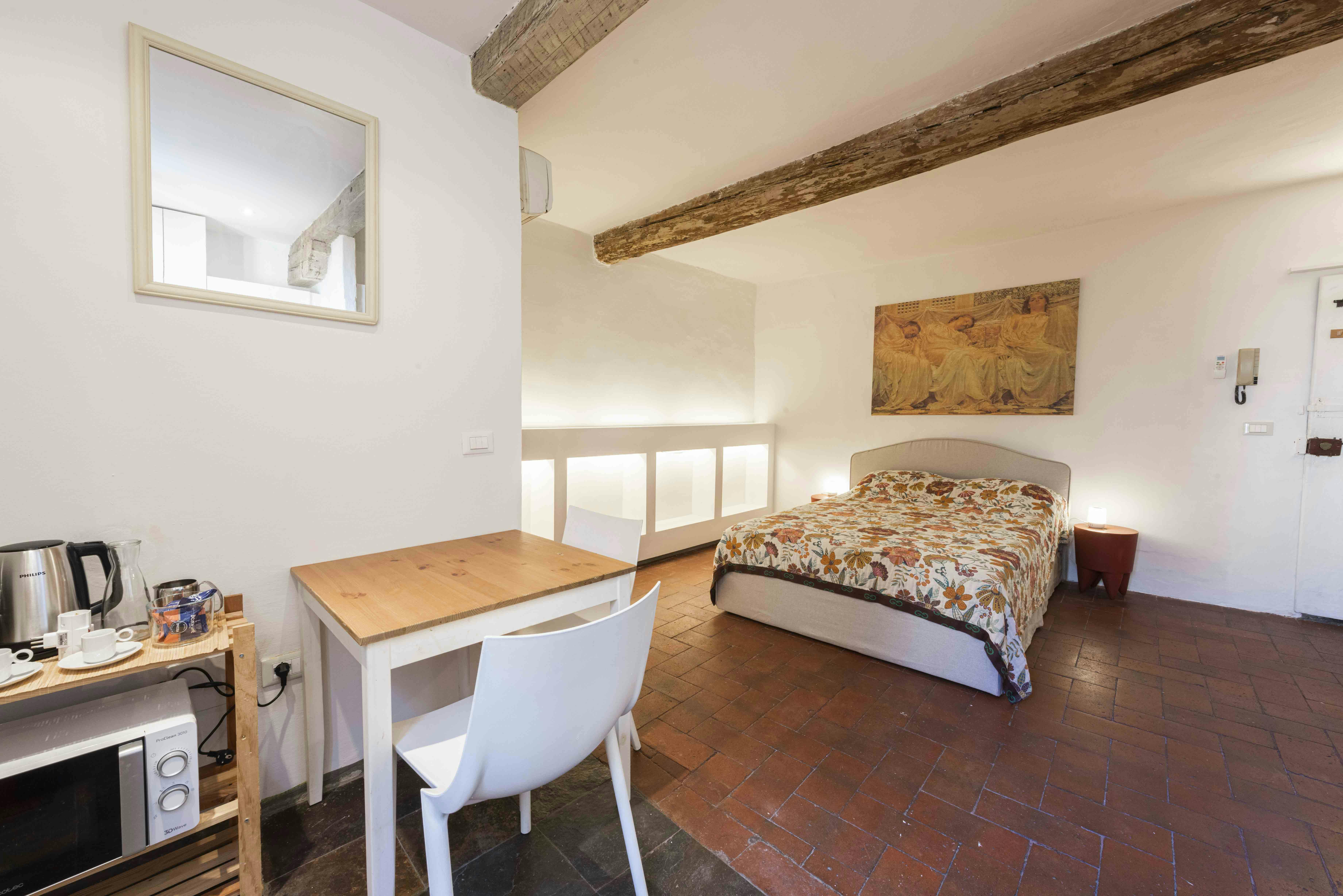 Just a few steps from Santa Maria Novella train station and right in the heart of Florence’s historic center, this functional studio apartment is available for rent in the well-located Via dell’Amorino. The apartment is situated on the third floor of a traditional building without an elevator and features classic Tuscan details such as terracotta flooring and exposed wooden beams, creating a warm and welcoming atmosphere. The space consists of a single open-plan room with a kitchenette equipped with a microwave and the essentials for a practical stay. The bathroom, with a window, includes a shower. The apartment also offers WiFi and air conditioning, making it a convenient solution for those who want to enjoy the city center with everything within easy reach. A simple yet well-located option — ideal for anyone looking for a no-frills base in the heart of Florence...