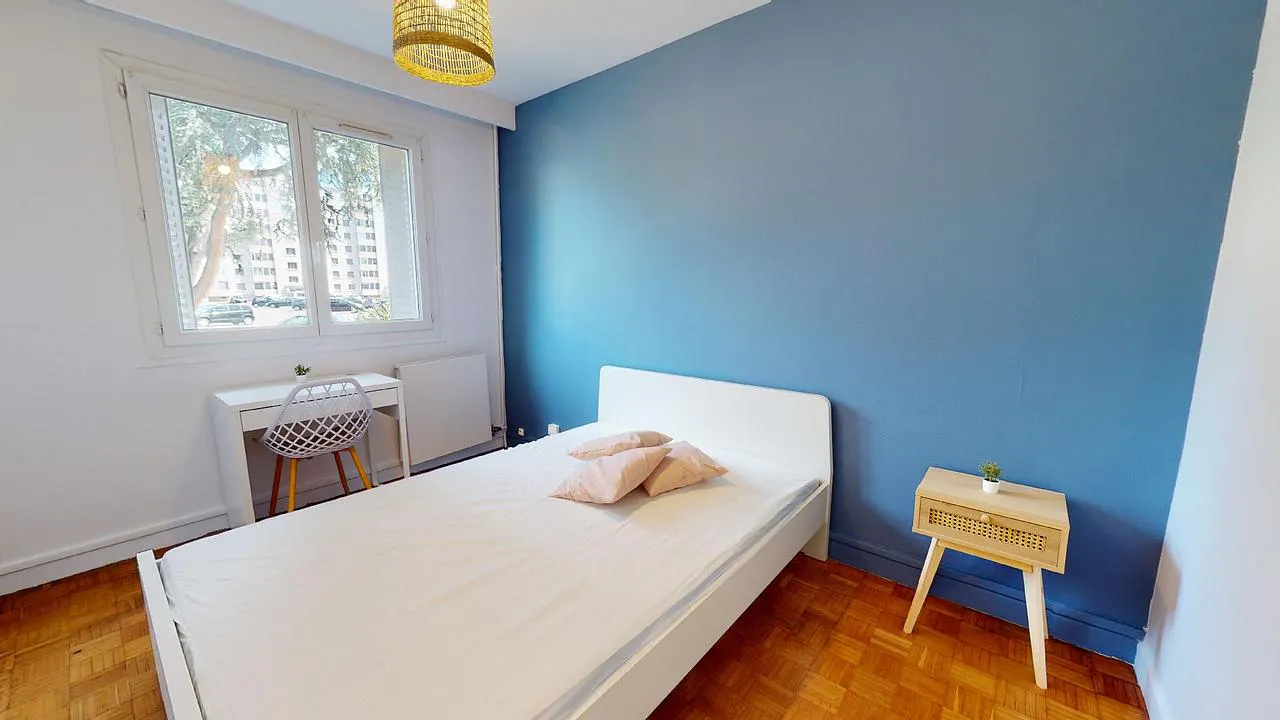 📍Découvrez cette colocation de 3 chambres de 64 m2 située au 12 Avenue Jules Guesde à Vénissieux (69200). 🛌LA CHAMBRE Cette chambre se compose d'un lit double, d'un bureau accompagné d'une chaise et d'une armoire de rangement. 🛋LES ESPACES COMMUNS Cet appartement de 4 pièces compte deux chambres, une cuisine et une salle de bains équipée d'une douche. L'appartement est équipé d'un chauffage collectif. La fibre y est également installée. Il se situe au rez-de-chaussée d'un immeuble avec ascenseur. 🏙QUARTIER & TRANSPORTS Des restaurants, des commerces, des boulangeries, un supermarché, une poissonnerie et trois boucheries se trouvent dans les environs. Plusieurs établissements du supérieur se trouvent à moins de 10 minutes en voiture. Côté transports en commun, on trouve sept lignes de bus, la station de métro Parilly (ligne D) ainsi que la ligne de tramway T4 (Joliot-Curie-M. Sembat) à moins de 10 minutes à pied. Des autoroutes et la nationale N346 sont accessibles à moins de 8 km. 💡SERVICES ET ÉQUIPEMENTS Chauffage Eau chaude Eau courante Electricité Entretien de l'immeuble Internet Fibre Taxe Ordures Ménagères ———————————————————————— Bail individuel à la chambre. Pas de caution solidaire. Chacun est libre de partir quand il veut sans se soucier des autres colocs, dès le moment où il respecte un mois de préavis. Eligible aux APL. Les informations sur les risques auxquels ce bien est exposé sont disponibles sur le site Géorisques : (hidden) Montant estimé des dépenses annuelles d'énergie pour un usage standard : 1270 € par an. Prix moyens des énergies indexés sur l'année 2021 (abonnements compris...