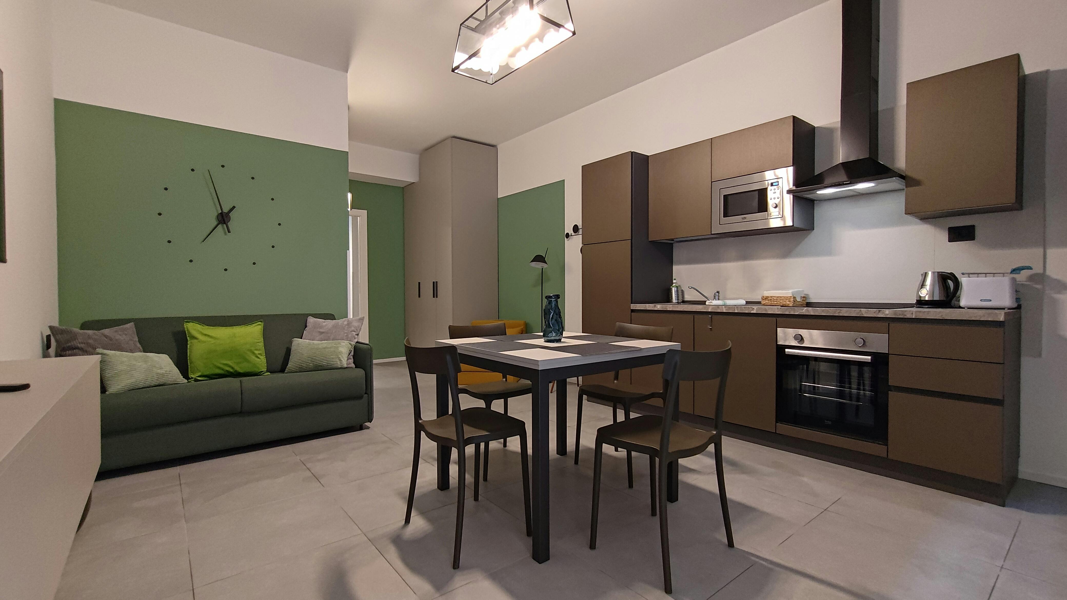 Appartamento Moderno ed elegante appena ristrutturato, sito in zona comoda e ben fornita, a comoda distanza dall'Ospedale Maggiore e dal centro di Bologna. Si compone di ingresso su zona giorno con divano letto matrimoniale, poltrona letto singola, cucina attrezzata, smart TV, camera da letto matrimoniale con armadio, scrivania e smart TV, bagno completo con ampia doccia, lavatrice, WiFi illimitato ed aria condizionata. Parcheggio gratuito privato all'interno della proprietà. L'appartamento è posto al piano terra, non sarà quindi necessario fare rampe di scale per raggiungere l'appartamento...