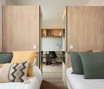 🏡 Modern Student Residence in Madrid Vicálvaro! Shared studio apartment. The sleeping area includes 2 90 cm beds, and there is a fully equipped kitchen with an oven, induction hob, microwave, sink, and refrigerator. A dedicated study space is provided with a desk and chair, and a Smart TV can be used for both entertainment and as a work monitor. Each studio also has a private full bathroom and high-speed Wi-Fi internet access. 🍳 About the residence: The residence provides a range of amenities to enhance your student experience. Enjoy access to coworking spaces for focused study sessions, a gym to stay active, a cinema room for entertainment, and social lounges to connect with fellow students. Additional facilities include laundry services, secure bike parking, and 24/7 security to ensure your comfort and safety. 📍 About the area: Located in the Vicálvaro district, this residence is just a short distance from the Rey Juan Carlos University Vicálvaro Campus. The surrounding area offers a variety of restaurants, cafes, shops, and cultural attractions, providing a vibrant and enriching environment for students. Ready to embark on your academic journey in Madrid? This residence provides the perfect blend of comfort, convenience, and community to support your student life. HousingAnywhere is an online booking platform. Therefore, exchanging contact details and offering viewings is not possible before the booking. We look forward to meeting you...