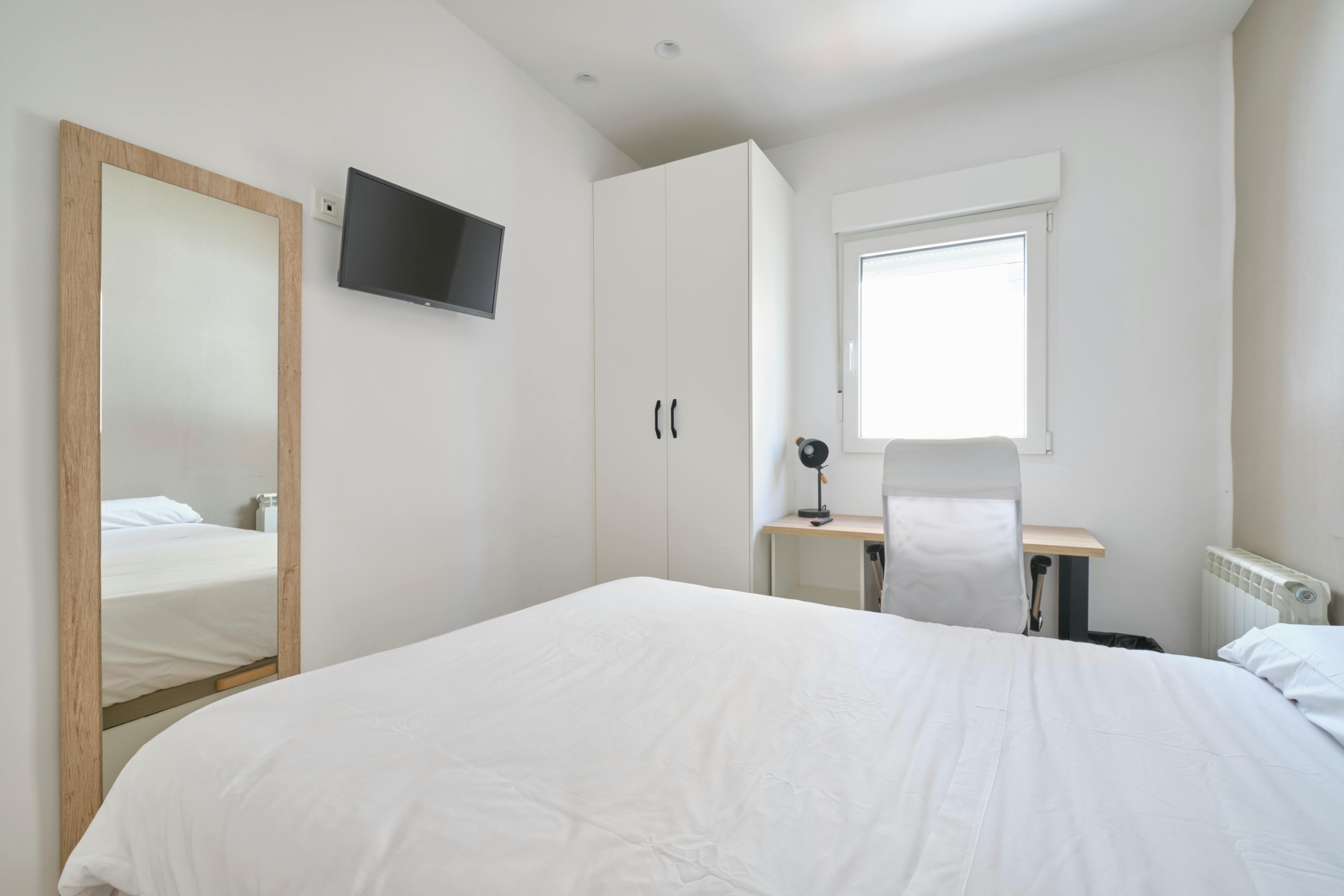Room with cleaning service – All bills included Perfect for Erasmus students or young professionals. Fully furnished with a double bed, desk, ergonomic chair, wardrobe, and Smart TV. ✅ High-speed WiFi ✅ Shared kitchen & bathroom ✅ Weekly cleaning of common areas ✅ All utilities included (up to 75 €) ✅ Safe residential area ✅ English-speaking landlord Guests will have to pay a one-off 5% commission fee of the total price for management costs prior to the check-in. Top location – Avenida Portugal – just minutes from university, shops, bars, cafe, gym and public transport...