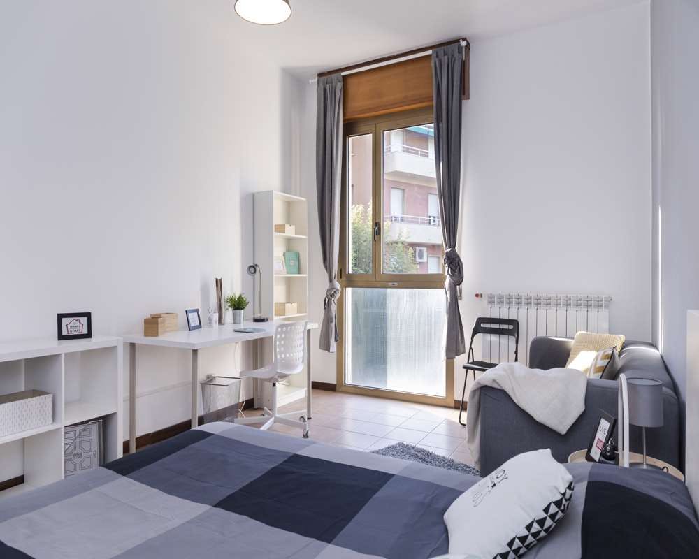 Single room in a shared apartment, composed by 6 bedrooms and 2 bathrooms. Of about 22 sqm with a one and a half bed and a work station. With wifi, dishwasher, washing machine. Energy class: D, IPE 76.70 Kwh/Sqm year. Current tenants: 2: 25, Male, Student 4: 21, Male, Student 5: 22, Male, Student 6: 25, Male, Student Please be aware that HousingAnywhere is an online booking platform. Therefore exchanging contact details and offering viewings is not possible. If you would like to reserve this accommodation, send me a booking request or a message and please mention your age and occupation. I look forward to talking to you! CONTRACT Please, note that to all our listings we apply fortnightly contracts. This means that If you check-in during the first half of the month, you will be charged for the full month. If you check-in during the second half of the month, you will only be charged for the second half. The second half of the month starts on the 16th. If you check-out during the first half of the month, you will only pay until the 15th of that month. If you check-out during the second half of the month, you will be charged the full month....