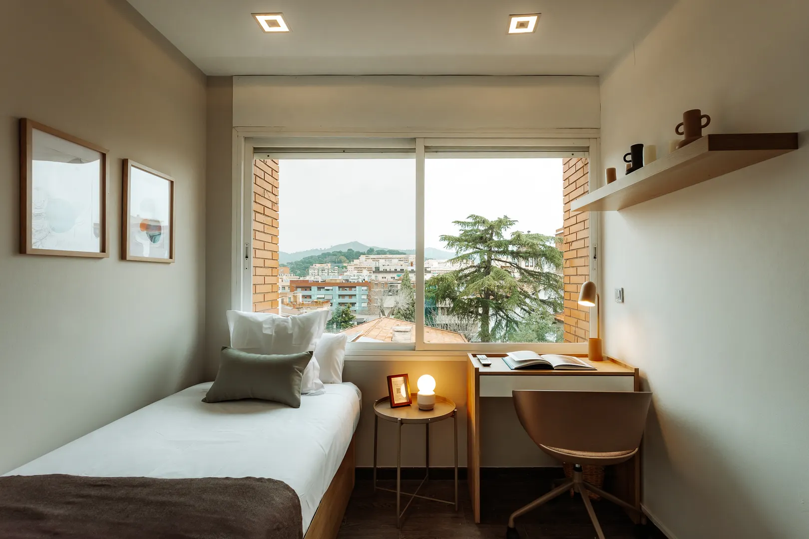 Welcome to Room Chapi in Clubhouse Fargas! Bathed in natural light and offering breathtaking views through its large windows, this room is a cozy haven. Though compact, it exudes warmth and has everything you need to feel right at home. Clubhouse Fargas is more than just a home—it’s a vibrant hub where young professionals and students connect, share experiences, and thrive. With beautifully designed common spaces, a rooftop perfect for relaxing, and a dynamic community, every moment here is inspiring. Font d’en Fargas is a peaceful, green oasis in Barcelona, offering fresh air, open spaces, and excellent connections to the city’s top attractions....