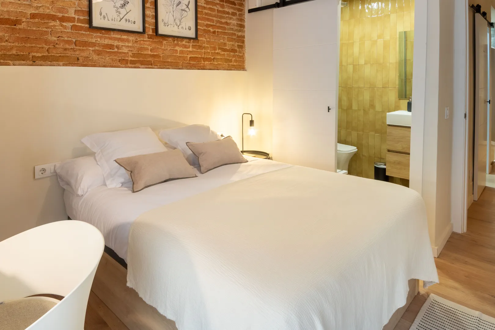 Welcome to Suite Corte in Casa Amalia, a spacious and elegant room with rustic charm. With exposed brick walls, wooden beams, and soft white tones, it offers a warm yet refined atmosphere. The private en-suite bathroom adds extra comfort, making it an ideal space to relax and feel at home....