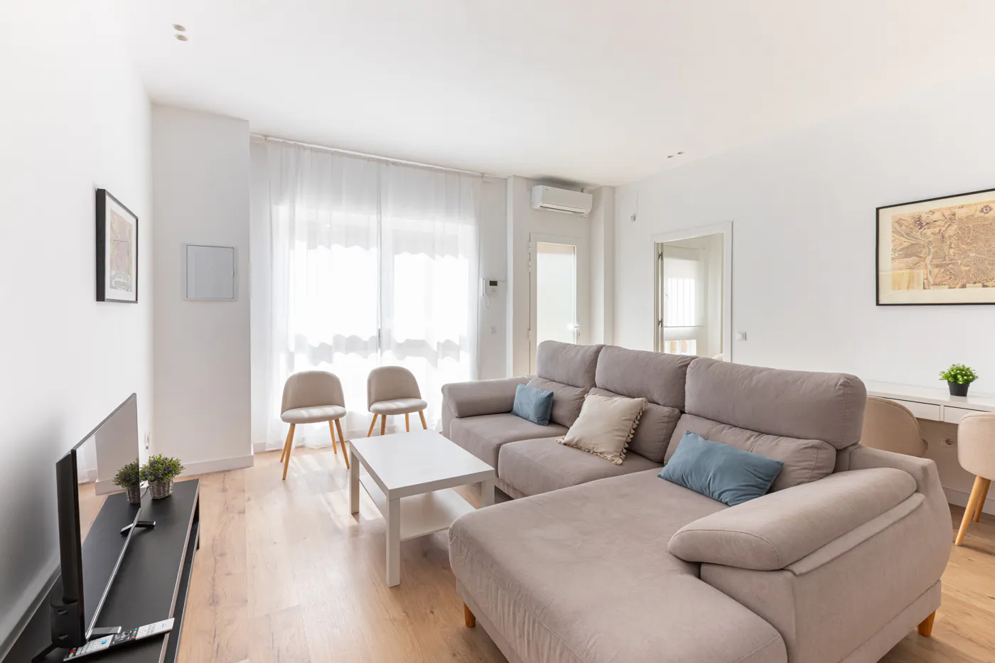 *Monthly rental apartment (from 32 days to 11 months)* This apartment is located in Emiliano Barral street, in the residential neighborhood of San Juan Bautista, within the district of Ciudad Lineal in Madrid. It offers a practical and bright distribution in a quiet environment, ideal for professionals, students or couples looking for comfort and good connection with the rest of the city. The open concept living room is equipped with sofa, TV and integrates perfectly with an open kitchen that has all the essential appliances, such as oven, refrigerator, dishwasher, microwave and Nesspreso coffee machine, creating a functional space for day to day life. From the living room there is access to a small outdoor patio, a perfect place to take a breath of fresh air or enjoy a coffee outside. The sleeping area consists of two bright double bedrooms with fitted closets. The complete bathroom has a modern shower. In addition, the property has a separate laundry area with washing machine and iron and plenty of additional storage space. The location in San Juan Bautista allows easy access by car via the M-30 and M-40, and is well connected by several bus lines and the metro station Avenida de la Paz (L4), which is a 10-minute walk away. Nearby there are supermarkets, local stores, cafes and green areas, which makes this apartment a very complete option for temporary stays in Madrid. SERVICES INCLUDED: - Check-in (after 15:00h) and Check-out (before 12:00h) in the apartment - Regular cleaning and linen change, - WIFI included in all our apartments - Maintenance included (For damage due to normal use) - Fully equipped and furnished apartments - Multilingual manager assigned during the entire stay REGISTRATION (empadronamiento): only possible for stays longer than 6 months Be aware that HousingAnywhere is an online booking platform. Therefore exchanging CONTACT DETAILS and offering VIEWINGS is NOT POSSIBLE. The platform keeps your payment safe until 48 hours after your move-in date. In case the accommodation is not as advertised, you will be entitled to get a refund....