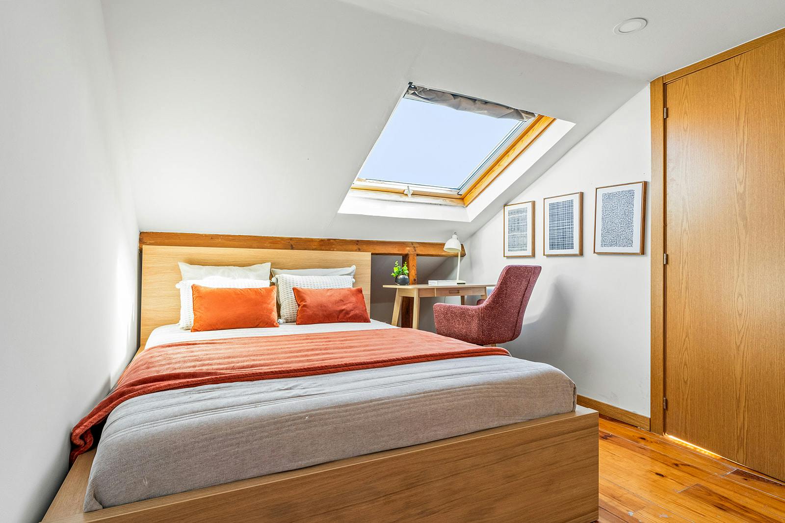 The fresh bedroom is a welcoming and comfortable space, designed to provide residents with a peaceful and restful environment. The room features a cozy bed, desk, chair and ample storage for your belongings. Located in Graça, one of the most emblematic neighbourhoods in Lisbon, this home offers easy access to a variety of transports, such as buses (734, 797) and trams (12E, 28E). Pharmacies, supermarkets are conveniently located nearby, making everyday life more convenient. The house itself is spacious and well equipped, with 8 bedrooms and 2 bathrooms. The kitchen has all the necessary appliances and utensils for cooking meals. Please note: - Payment: Must be completed 72 hours before check-in directly to the landlord. This includes the last month’s rent, security deposit, and Administration fee. - Monthly Cleaning Fee: €25. Additional cleaning available upon request. - Utilities: Included up to €25 per tenant. - Bedding: Pillows, duvet, and bed sheets are not provided. - Check-ins: Available Monday to Saturday, from 4:00 PM to 7:30 PM. No check-ins on Sundays or public holidays. - Cleaning of the common areas is provided at least twice a month. A valid identification document is required to complete the lease agreement. -Your check-in will only be authorised 24 hours after the payment has been confirmed in our bank account and the contract has been signed. -Overnight guests may incur a fee - please check this with the landlord...