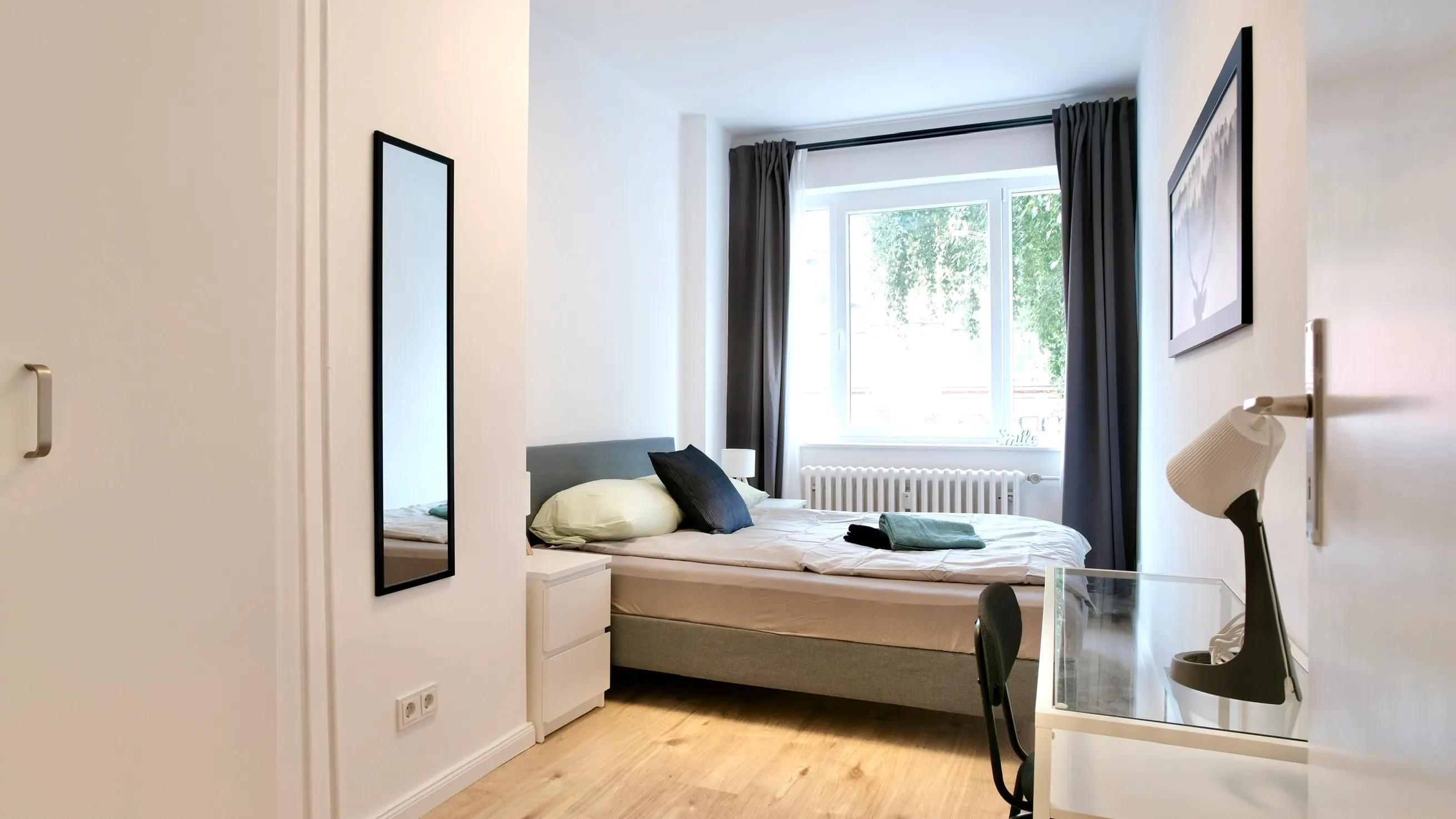 Bright and fully furnished 3-bedroom apartment available in beautiful Moabit, just steps from the popular Arminiusmarkthalle. The apartment offers three spacious bedrooms and a cozy living room with an open-plan kitchen, equipped with all essential appliances including a dishwasher and Smart TV. Tastefully decorated and filled with natural light, the apartment is move-in ready and ideal for families, professionals, or shared living. Registration (Anmeldung) is possible, making it a perfect choice for anyone looking to settle comfortably in one of Berlin’s most charming and well-connected neighborhoods...