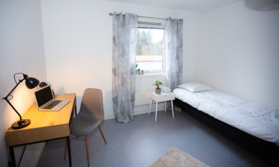 17 kvm studentrum med flexibel hyresperiod. Alla rum har tillgång till kök med kylskåp och diskmaskin samt tvättstuga på varje våning. Perfekt för studenter eller de som arbetar inom sjukvården. VILKOR FÖR HYRA: 1. Inskrivningsintyg från högskola/universitet eller arbetsintyg från sjukvården. 2. Inga anmärkningar i belastningsregistret. 3. Hyresperioder föredras vara långsiktiga: 3, 6 eller 12 månader. 4. Vi hyr inte ut till par eftersom vi har delat upp till tjej och kill korridore...