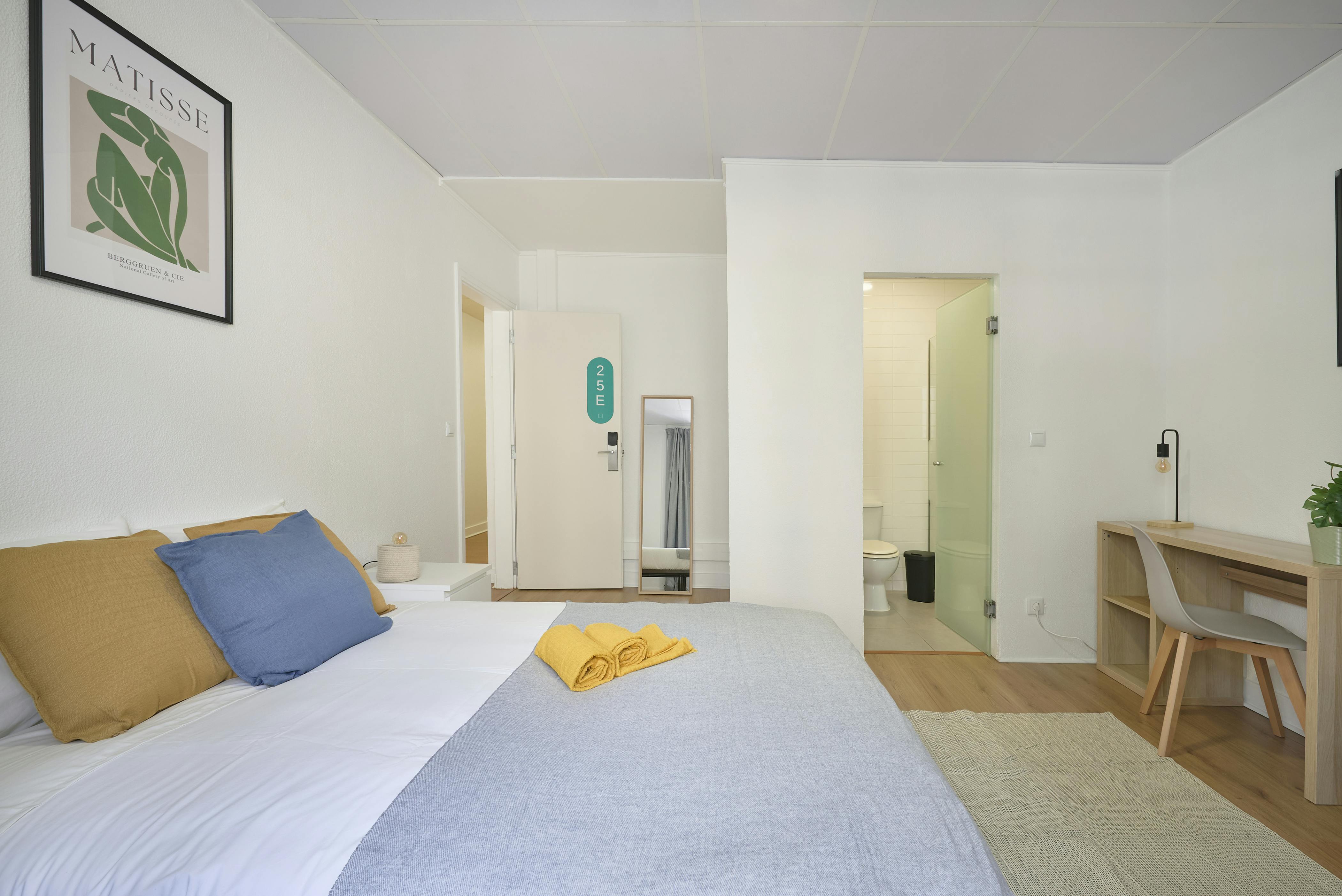 Rua Alexandre Herculano is a street known for its tree-lined pavements and vibrant atmosphere located in the Arroios neighbourhood, the street features a mix of residential buildings and local businesses. It is known for its charm and accessibility, providing connections to nearby parks and public transport options. o Metro: 14min walk (900m) Parque o Bus: 3min walk (190m) R. Sta. Marta o Train: Not applicable ______ 5-bedroom flat on the 2nd floor, featuring 3 WCs. The kitchen is fully furnished and comes equipped with a washing machine for your convenience. The whole flat boasts plenty of natural light for a cozy environment and building includes a lift for easy access. ______ o The rent includes 35€/per person of included bills (extras will be deducted from deposit). o A weekly clean of the common areas is also included in the rent. o We offer bed sheets and towels just as shown in the pictures. o The rooms come as shown in the pictures or with an equivalent replacement. o The rooms are for individual use except if we have a previous agreement. o Visits are allowed but they need to be communicated and approved in a timely manner. o All check-ins are done in person, require ID and the deposit paid. o Check-ins are possible from Monday to Friday 9am – 5:30pm. Weekends & public holidays may be possible with a 20 euros charge per person. o We do not allow smoking or pets in the flat. ______ This lovely room is fully furnished and features a dedicated working area complete with a desk, chair and a lamp. It also includes a wardrobe, a bedside table with an accompanying lamp and a mirror. The room boasts a comfortable double bed measuring 140 cm in width and 200 cm in length. This room has a window facing the front side of the building which can make it noisier at times but makes up for it with plenty of exposer to natural light. Additionally, this bedroom is an ensuite, offering the luxury of a private bathroom for your exclusive use. As a disclaimer we want to inform you that the flat comes furnished as shown in pictures or with equivalent replacements....