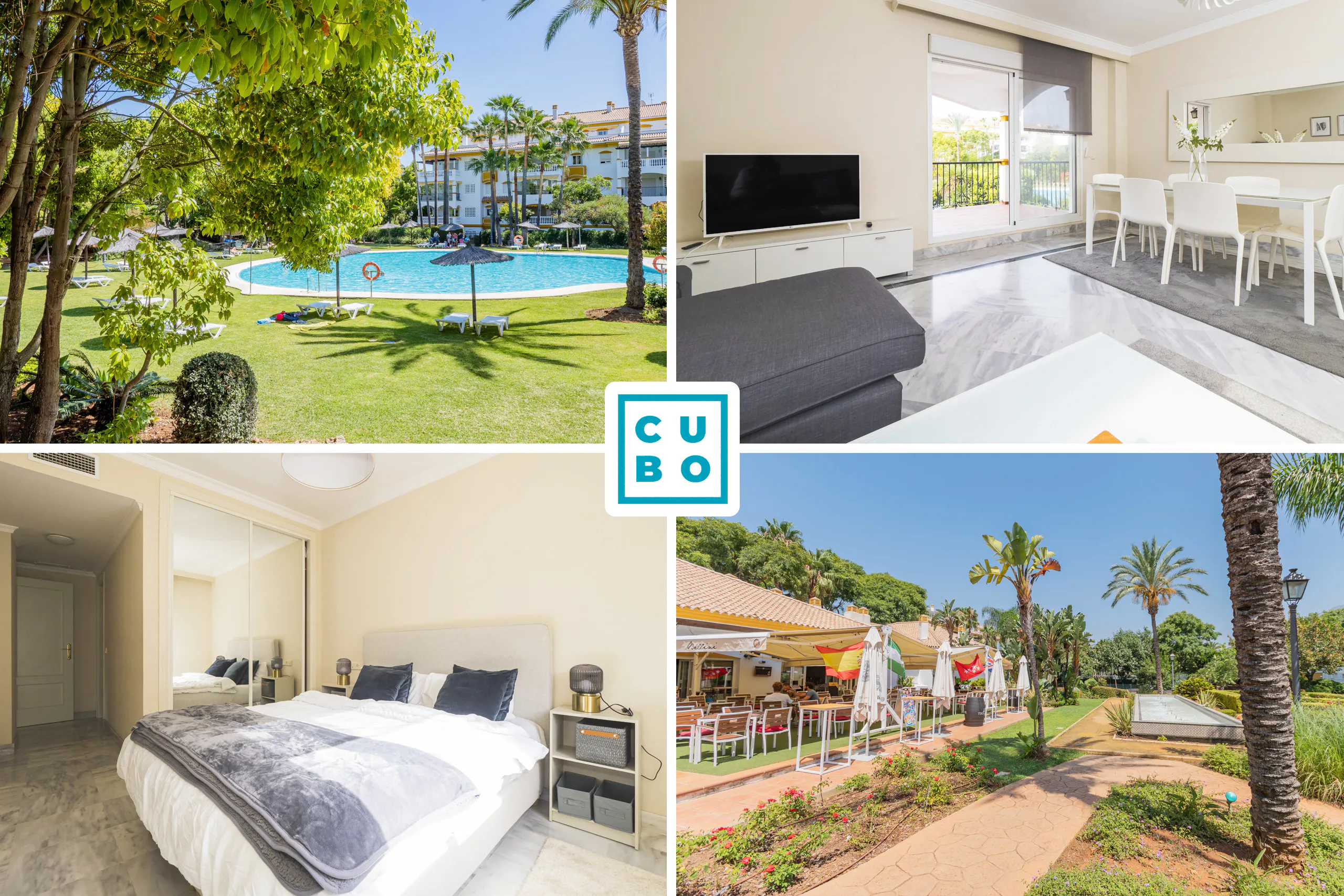 Cubo's Apartamento Las Mimosas & Parking *Holiday apartment in Marbella* with terrace, swimming pool and access to exclusive sports facilities in La Dama de Noche, Nueva Andalucía, ideal for 4 people looking for comfort and proximity to Puerto Banús.. . Hello! We are CUBO'S HOLIDAY HOMES, specialised in holiday accommodations since 2005.. . This charming apartment in Marbella offers a privileged location in the exclusive urbanisation La Dama de Noche, near Puerto Banús and its famous beaches. Perfect for 4 people, it has a spacious terrace with views of the community pool and well-maintained gardens, creating a relaxing atmosphere to enjoy the sun and tranquillity.. . The dining room is bright and modern, with large windows that fill the space with natural light and a comfortable sofa to rest after a day exploring the area or enjoying the beach. The independent kitchen is equipped with state-of-the-art appliances, including a refrigerator, oven, microwave, dishwasher, and a practical area with a washing machine and dryer, ideal for long stays.. . Holiday apartment in Marbella for 4 people. . The accommodation has two bedrooms: a main suite with a private bathroom, double bed, built-in wardrobe and television, and a second bedroom with two single beds and wardrobe, ideal for families or small groups. Additionally, it has a second full bathroom with bathtub. The centralised air conditioning and WiFi connection guarantee a comfortable stay at any time of the year.. . The urbanisation offers excellent facilities: paddle and tennis courts for sports enthusiasts, a large communal swimming pool next to a children's pool, play areas for children and a café to enjoy without leaving the premises. For greater convenience, the apartment includes a covered parking space.. . In the surroundings, guests will find a wide range of luxury shops, high-end restaurants, vibrant nightlife, and seafront promenades to relax. It is also close to golf courses, natural parks and family attractions, which makes it a perfect destination for both quiet leisure and adventure.. . Don't forget to book this jewel in Marbella now and enjoy unforgettable holidays surrounded by everything you need for rest and fun. 🌞🏖️. . As we also do in all other properties of our CUBO'S HOLIDAY HOMES brand, all our accommodations have towel and bed linen sets. We have cots and high chairs *upon request* for babies from 0 to 2 years old. And all of this, absolutely FREE.. . Likewise, guests of CUBO'S HOLIDAY HOMES can enjoy EARLY CHECK-IN and LATE CHECK-OUT upon request, provided that the booking calendar and scheduled cleanings allow it.. . Other notable aspects. ★ CUBO'S HOLIDAY HOMES welcomes you!. We are a short stay management agency that offers carefully selected properties. The company was founded in 2005 with the mission of offering a quality alternative. The ratings of our guests in all our accommodations endorse us. You can check it on our profile.. . Moreover, CUBO'S HOLIDAY HOMES offers a blog with recommendations about the area, places to visit, restaurants and special dates.. . Do not hesitate to send us your comments (recommendations, requests, etc.). We will do our best to guarantee your safety and peace of mind.. . 📌 Booking Conditions. 🔹 Mandatory deposit before entry (refundable 48 hours after review).. 🔹 Parties and noise are not allowed during rest hours.. 🔹 It is recommended to take out travel insurance in case of water restrictions decreed by the authorities.. ⏰ IMPORTANT: Arrivals from 9:00 PM onwards involve an additional cost that must be paid upon entry.. . CUBO'S HOLIDAY HOMES is an online marketing platform for tourist accommodations. Through this platform, owners of establishments - duly registered in the corresponding tourism registry of their autonomous community - promote and manage the booking of their accommodations. CUBO'S HOLIDAY HOMES does not act in any case as owner, manager, operator, or direct responsible for any of the accommodations offered on the platform. Its function is exclusively limited to facilitating contact between interested parties and the legal representatives of the accommodations...