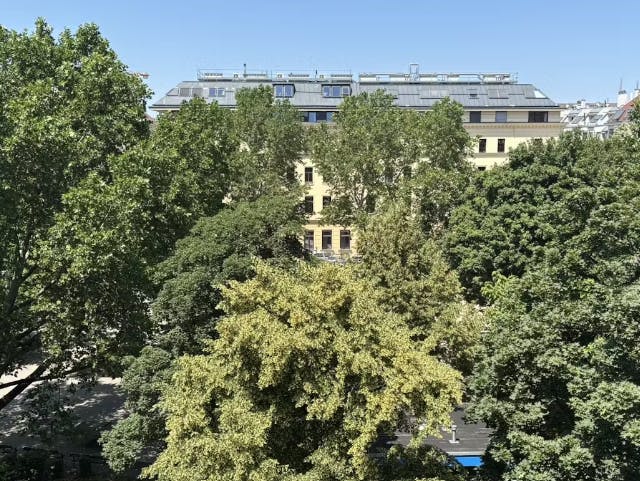 Discover your ideal home in the vibrant 5th district of Vienna! This charming apartment is located in a historical building that has been renovated in 2017, offering the perfect blend of high ceilings, big windows and modern amenities. It measures 45 m2 and consists of a beautiful, combined living and kitchen area, a cozy bedroom, a bathroom with rain-shower, a separate toilet, and a little storage room with a washing machine. Apartment Highlights: • Great Location: Located in the popular 5th district (Margareten), you will be surrounded by a diverse array of shops, restaurants and cafes. • Excellent Public Transport Connection: just a 1-minute walk to the 59A bus (130 m) that leads straight to the Vienna State Opera, a 8-minute walk to the 14A bus (600 m) that takes you directly to the city's largest shopping street, and a 9-minute walk to the U4 Margaretengürtel subway station (700 m), further means of public transport: bus (hidden) m), Tram 6 (400 m), subway station Pilgramgasse (1 km). • Park Views: The living room overlooks the Einsiedlerpark, allowing you to enjoy the sight of tree canopies right in the heart of the city. • Peaceful bedroom: The bedroom overlooks a quiet inner courtyard ensuring a restful atmosphere. • Third Floor with Elevator: The apartment is located on the third floor and is easily accessible by elevator, allowing it to be beautifully filled with natural light. • Fully furnished: You just need to bring you suitcase and move in! The furniture includes a cozy sofa with bed function, a bookshelf, a dining table with 4 chairs, a dresser, a bed (1,4 x 2m), two wardrobes and a small desk. There is also a complete kitchen setup (stove, oven, fridge, microwave, cookware, dishes), bedding, towels, household essentials, and High-speed internet. The apartment is ideal for international residents seeking for a comfortable and well-connected home in Vienna. • Grocery shopping nearby: In 1 - 5 minutes walking distance you find supermarkets (2x Billa, Spar, Hofer [=Austrian Aldi], drugstores (Bipa, dm) and a pharmacy....