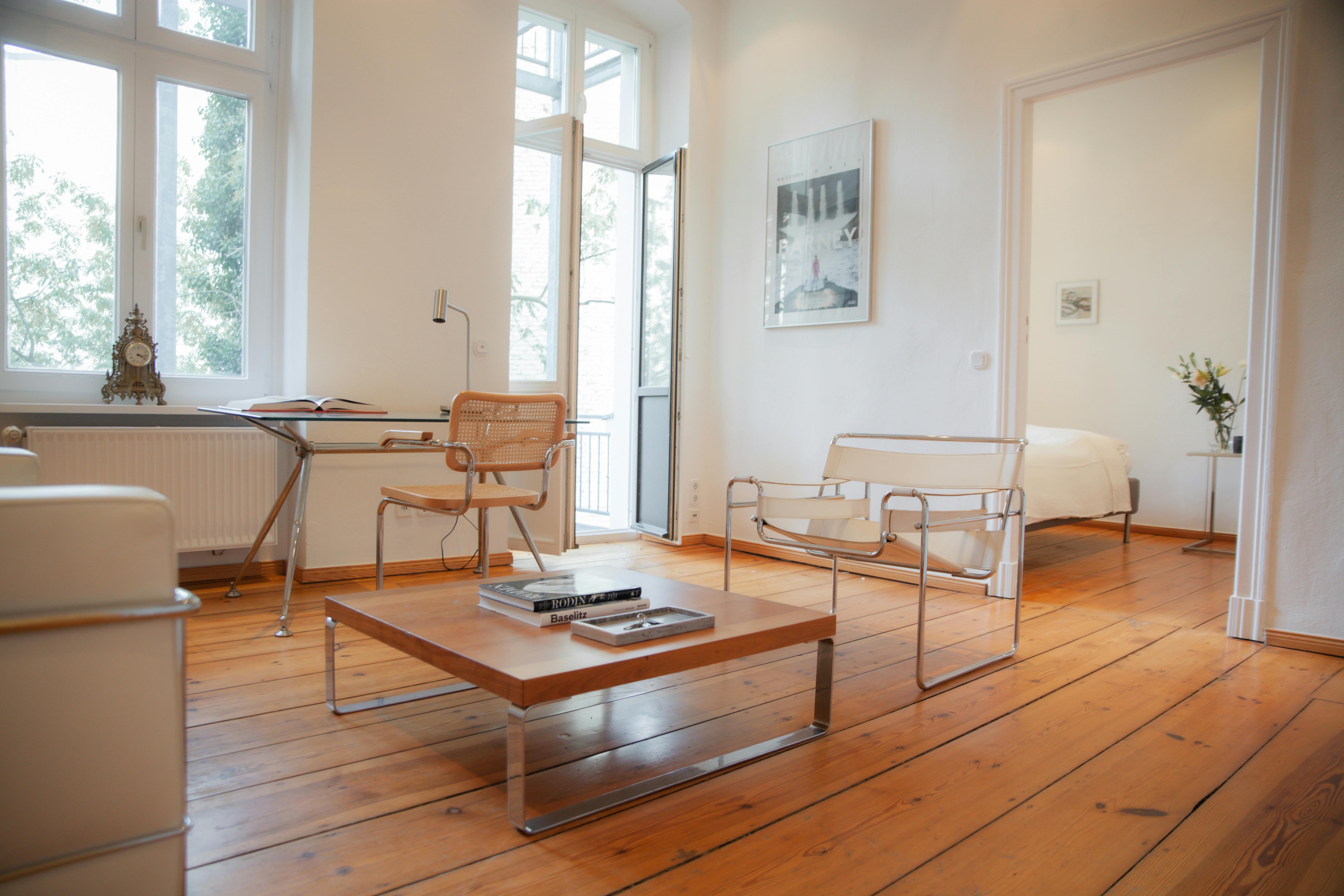 This thoughtfully furnished apartment offers 53 square meters of calm, light-filled living in one of Kreuzberg’s most vibrant yet quietly elegant settings. Located directly on Oranienplatz, it blends refined interior architecture with cultural proximity and a sense of retreat. Natural wooden floors run throughout the apartment, complemented by a travertine stone floor in the kitchen and bathroom. The kitchen features a gas stove and a granite countertop—materials chosen for their clarity, durability, and quiet sophistication. A full set of tableware, utensils, and appliances is included. The living area is furnished with selected Bauhaus-inspired pieces, including a generous desk and a lounge chair. French doors open onto a private balcony with seating for two—perfect for a quiet morning coffee or evening breeze. In the bedroom, a comfortable double bed, open wardrobe and ambient lighting offer a serene atmosphere. The bathroom is fitted with a walk-in shower, minimalist fixtures, and the same warm travertine stone underfoot. High-speed internet, fresh bed linens, and all daily essentials are provided, allowing for an effortless arrival and immediate sense of home. Location: The apartment is a few steps from the U-Bahn stations Kottbusser Tor (U1/U8) and Moritzplatz (U8), with direct connections to all parts of Berlin. Bus line M29 links the area to the southwest of the city, including Grunewald. Nestled between the Landwehrkanal and the Engelbecken, the location offers direct access to two of Kreuzberg’s most atmospheric waterside promenades—ideal for evening strolls, relaxed mornings, or simply breathing out. Just outside the door: independent boutiques, art spaces, cafés, and the charming Graefekiez with its curated calm. Cultural Life & Leisure • Maybachufer Market (Tue & Fri) • Markthalle Neun (Fri & Sat) • Berlinische Galerie, König Galerie, and the Jewish Museum all close by • Alexanderplatz, Unter den Linden, and Potsdamer Platz within 10–15 minutes House Culture: No parties. No loud noise after 10 pm. This home is suited for individuals who value quality, calm, and a respectful atmosphere....