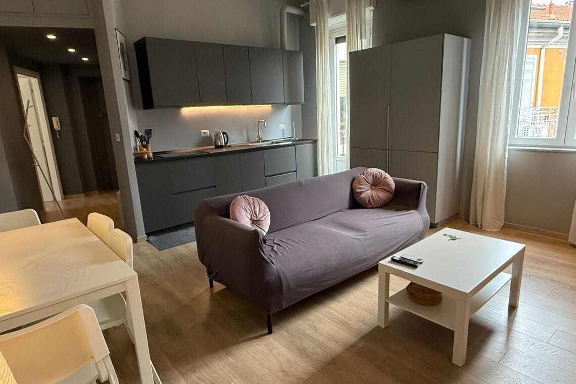 Apartment Description Furnished Two-Bedroom Apartment Milan – Description Situated in Via Fiamma, this furnished two-bedroom apartment in Milan is bright, modern, and fully renovated. Set on the fourth floor (with elevator) of an elegant residential building, it offers about 85 square meters of comfortable living space. Completely refurbished and newly furnished in 2022, the apartment combines style and functionality. Inside, you’ll find a welcoming entrance hall and a spacious living room with a fully equipped open-plan kitchen. Moreover, the kitchen includes an induction hob, fridge, freezer, dishwasher, microwave oven, and washing machine, providing everything you may need for daily living. There are two bedrooms: one with a king-size bed and another with a French bed (one-and-a-half size). In addition, the modern bathroom features a shower and a window for natural light and ventilation. A small balcony, adjacent to the kitchen, adds a pleasant outdoor space for breakfast or a relaxing break. You’ll also benefit from air conditioning with two split units, fast Internet connection, and a 42′′ flat-screen TV. Central heating, included in the building expenses, ensures maximum comfort during all seasons. Therefore, this bright apartment in Via Fiamma is one of the most comfortable two-bedroom apartments in Milan for medium-term stays. Ideal for international students and professionals, it offers all comforts in a central location. Security deposit of € 2500. Electricity and gas bills included in the price up to € 100/month. Area description Central Location in Milan – Located in a quiet and very safe residential area, Via Fiamma is just a 15-minute walk from Piazza San Babila and the city center. Furthermore, the building is close to Piazza Tricolore and only five minutes on foot from the new Blue Metro Line (Tricolore stop), which offers fast connections to other parts of the city. Across the street, there’s a supermarket, and all essential shops and services are within walking distance. In addition, several cafés and restaurants typical of this elegant neighborhood create a pleasant and lively atmosphere. Overall, this area is ideal for students and professionals, and the safety of the surroundings makes it especially reassuring for families whose children will be living in Milan. IMPORTANT – ALL-INCLUSIVE PRICE The price includes rent, utilities (electricity, gas, water, Internet), building fees, taxes, 22% VAT, agency fee, monthly cleaning, contract, check-in/out and maintenance management. Electricity and gas may be subject to a usage cap, as specified in the listing. Final cleaning is NOT included and will be deducted from the security deposit (estimated amount assumes the apartment is left in good condition). HousingAnywhere’s service fee is added by the platform and shown before payment. The total price does not change, but payments are split between agency and landlord. You will receive a booking confirmation and a rental contract...