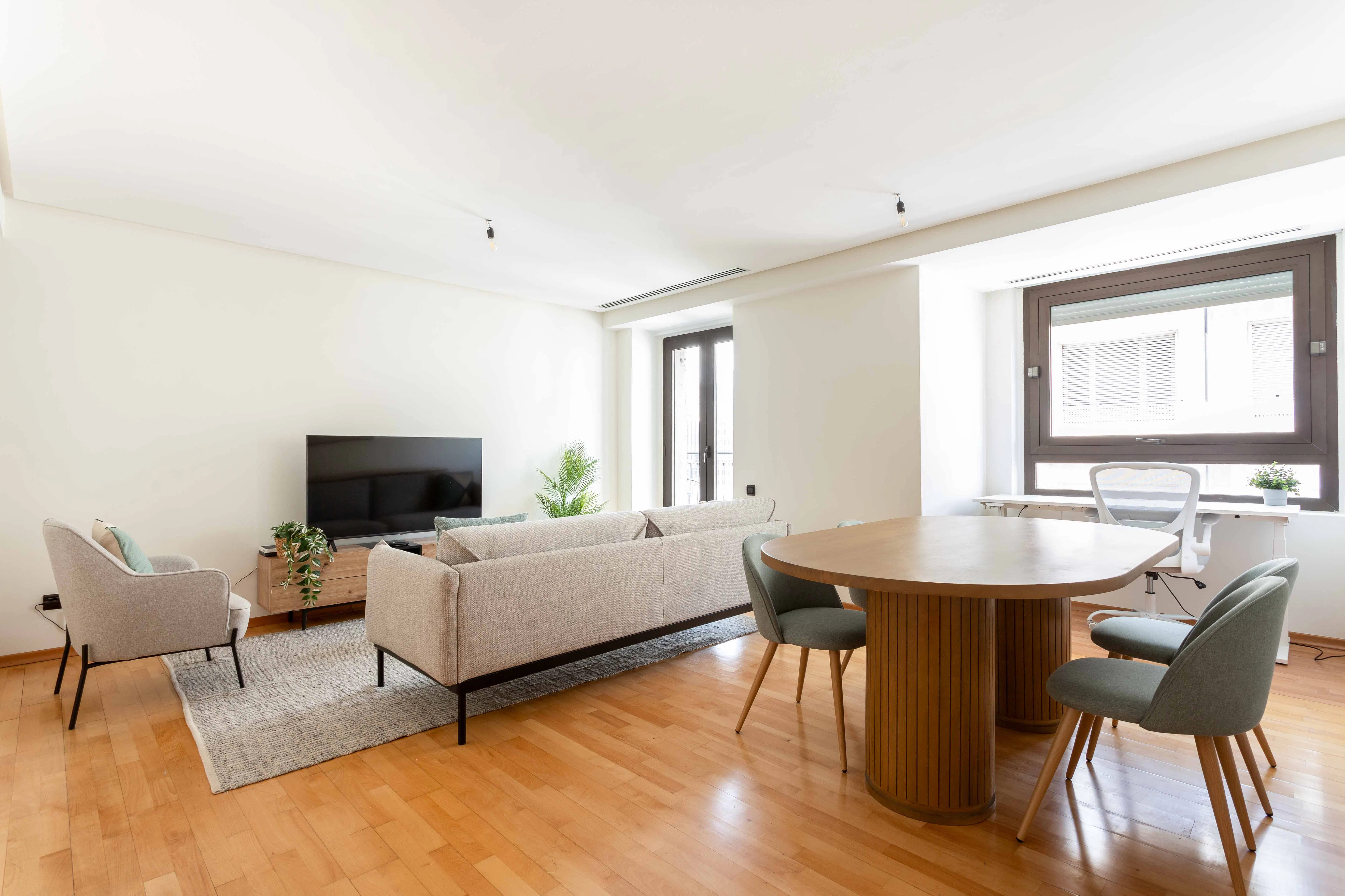 Composition: kitchen, bedroom, bathroom Amenities: iron & ironing board, drying rack, 2x bed linen & towels, washing machine, 2x dishwasher, terrace, air conditioning, wheelchair access possible, free internet access, elevator, no smoking rooms/facilities, no pets allowed, heating, no parties, cleaning by professional cleaning companies, staff follow all safety protocols from local authorities, linens, towels and laundry washed in accordance with local authorities guidelines, linen and towels washed in at least 60°c/140°f, 2x plates, cutlery, glasses and other tableware sanitised, dryer, shower gel, toilet paper, soap, 2x essentials (towels, pillows, bed linen, soap, toilet paper), wc, double bed, built-in wardrobes, cooking basics, cookware & kitchen utensils, espresso-machine, cooking hob with an oven, toaster, pans, coffee make...