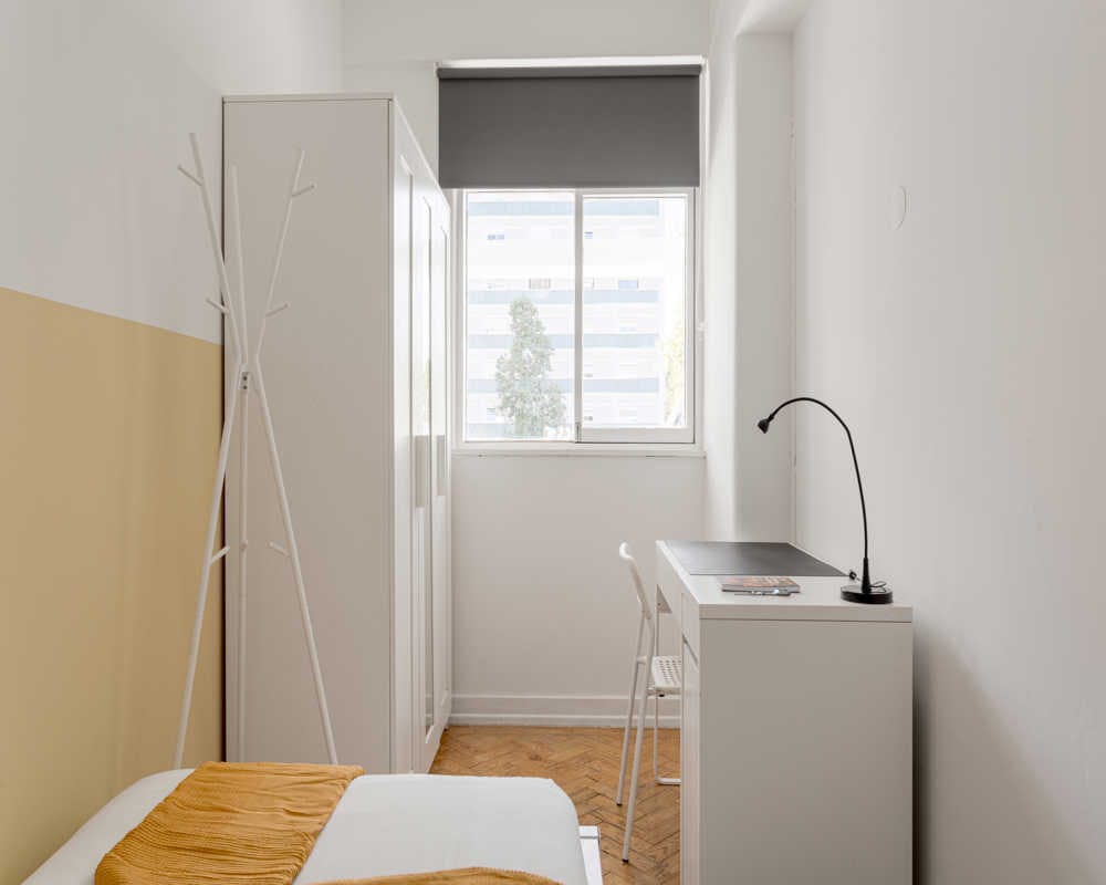 Cozy Room in Alvalade district, perfect for students and young professionals seeking comfort and convenience. This room features a size of 8.05 square meters, providing a personal space for relaxation. The shared apartment includes 6 rooms and 2 bathrooms, ensuring ample facilities for all residents. Enjoy modern amenities such as air conditioning, WiFi, a washing machine, and a dishwasher, making daily life easier. The building offers an elevator for easy access, enhancing your living experience. Nearby, you'll find essential services like *Meu Super* (151m, 1 min walk) and *H2Y* (110m, 1 min walk), along with great food options like *EPIC SMASH BURGER* (69m, 1 min walk). For students, *Biblioteca - Junta De Freguesia de Alvalade* is just 442m away (6 min walk). Join a vibrant community of like-minded individuals in this welcoming space. Ideal for those looking for a balanced lifestyle. Ready to move in? Schedule a viewing today! Current tenants: Please be aware that HousingAnywhere is an online booking platform. Therefore exchanging contact details and offering viewings is not possible. If you would like to reserve this accommodation, send me a booking request or a message and please mention your age and occupation. I look forward to talking to you! CONTRACT Please, note that to all our listings we apply fortnightly contracts. This means that If you check-in during the first half of the month, you will be charged for the full month. If you check-in during the second half of the month, you will only be charged for the second half. The second half of the month starts on the 16th. If you check-out during the first half of the month, you will only pay until the 15th of that month. If you check-out during the second half of the month, you will be charged the full month....