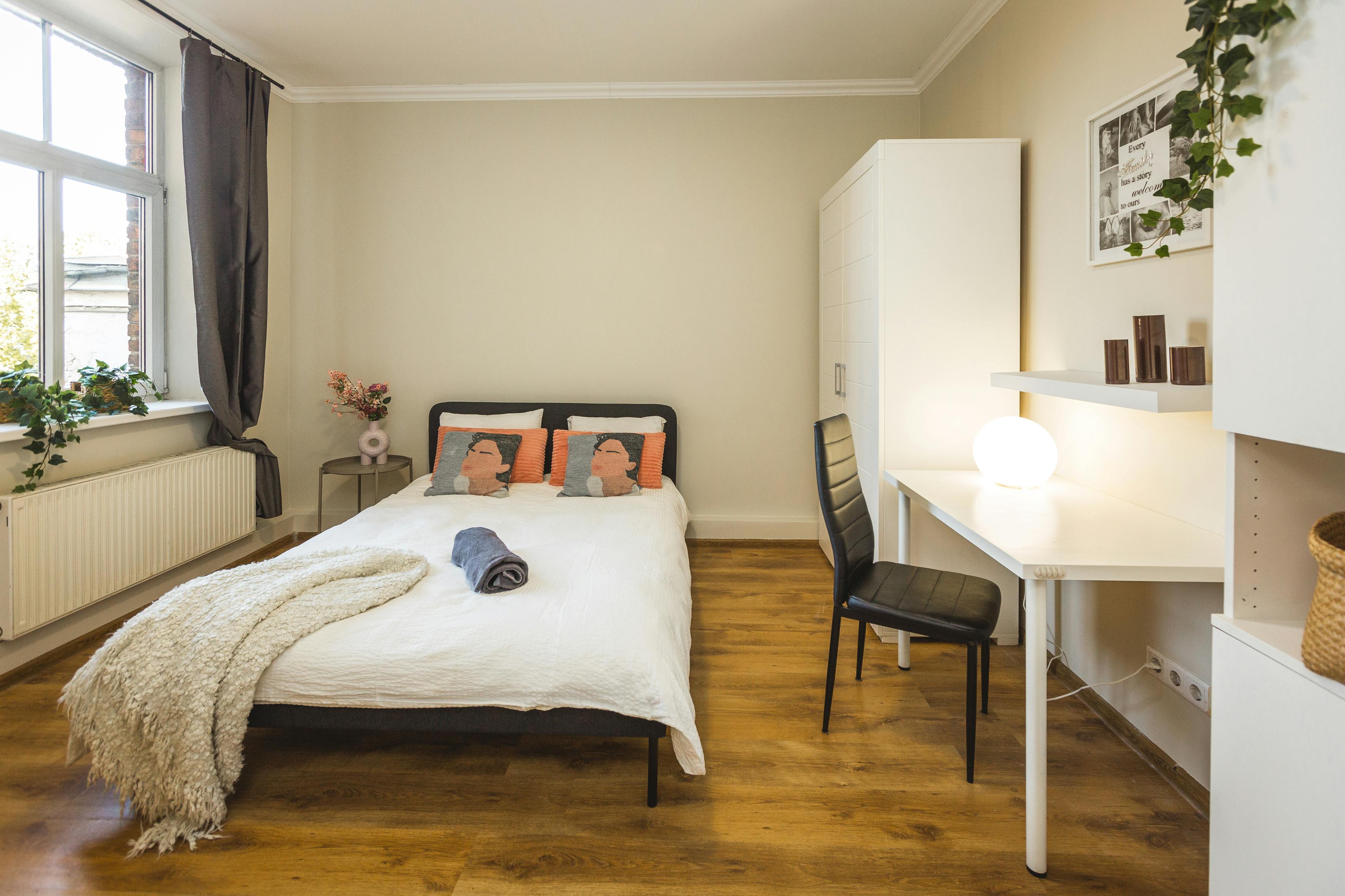 This 6-bedroom apartment is perfect for students, professionals, or anyone seeking a co-living space with all the essential amenities in a prime Riga location. Make this your new home and enjoy the perfect blend of comfort, convenience, and community living! BEDROOM Experience comfort and convenience in this spacious, fully furnished ensuite room located in the heart of Riga. This room features brand-new premium furniture, offering a fresh and contemporary ambience. The bedroom is equipped with: - Comfortable beds with new mattresses and fresh linens - Spacious desks and chairs - Large wardrobes - Individual room locks for added privacy and security APARTMENT Our spacious, modern apartment is designed for co-living, providing a comfortable and convenient living experience for all residents. Be the first to enjoy our newly furnished space, complete with a well-equipped kitchen and laundry facilities, including: Fridge I Oven I Stove I Washer/dryer NEIGHBOURHOOD Living or working at Lāčplēša iela 62 in Riga offers excellent advantages in terms of urban connectivity and lifestyle convenience. Located in the heart of the city, this address provides immediate access to an extensive network of public transportation options, including trams, trolleybuses, and buses. The central location reduces commute times and offers a cost-effective and environmentally friendly alternative to driving, making it ideal for professionals, students, and residents who value accessibility. In addition, Lāčplēša iela 62 is exceptionally well-positioned for access to Riga’s major universities. The University of Latvia, Riga Technical University, Riga Stradiņš University, and the Art Academy of Latvia can all be reached quickly via nearby tram or trolleybus lines. This makes the location highly attractive for students, academic staff, and anyone involved in higher education. The central placement, reliable transit links, and proximity to cultural and educational institutions make Lāčplēša iela 62 a vibrant and strategic choice for both living and working. PLEASE NOTE: + Bills are not included in the rent price. + Admin fee (One time fee, must be paid before the check in). 🕗 CHECK-IN TIME: - Monday to Friday - from 8 am until 6 pm. - If you cannot make any of these times message us and we will try to arrange something 🔊 RENTAL CONDITIONS: - There is a rental contract that must be signed and respected by the tenant(s). - For the rental contract it is necessary a copy of an ID Document and fiscal number. - During the booking process it is mandatory to be indicated who are the persons that are going to rent the accommodation and do the check-in. - Please note that we kindly request you to complete all payments (deposit & admin fee) within 48 hours of signing your contract. Security deposit will be returned if the accommodation is left in the same condition as received. - The security deposit can't be part of the last month's rent. - Every tenant is responsible for keeping the accommodation clean and in good conditions. - Parties are not allowed. - Loud noises are not allowed after 22:00. - Smoking inside the property is not allowed. - Pets or animals are not allowed. - Guest stays are limited to a maximum of 5 days. Extensions beyond this period require prior authorisation. We carry out contracts, issue receipts within the scope of the law and assist with obtaining the Residential Visa. *Please note that the photos provided are representative of the design and layout of the room. The actual room may differ in regards to furniture position and direction...