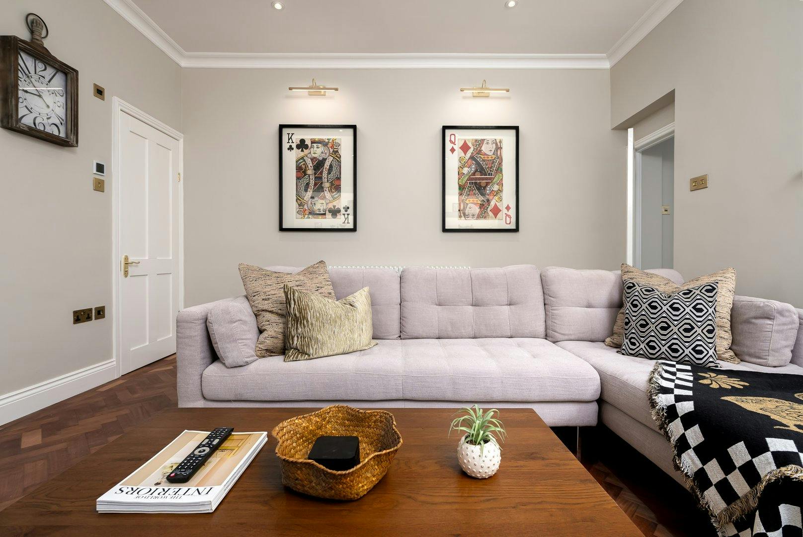Welcome! This beautifully designed living room offers the perfect blend of comfort and sophistication. Sink into the plush sofa and unwind while streaming your favourite shows on the smart TV above the elegant feature fireplace. The space is thoughtfully decorated with warm lighting, curated shelving, and cozy touches that create a relaxed and welcoming atmosphere. The area includes floor-to-ceiling windows that lead onto a terrace where you can fully relax. Cook, dine, and connect in the tastefully furnished kitchen and dining space, designed with both style and function in mind. This fully equipped kitchen has everything you need. Enjoy your meals at the elegant glass dining table, which comfortably seats five. Enjoy a gas barbecue during your stay! To use it, please bring your own gas. It’s perfect for a relaxed evening outdoors with family or friends. The home features three beautifully appointed bedrooms, each designed to provide a restful and refined retreat. The primary bedroom offers a luxurious UK king-size bed, while the second bedroom features a comfortable UK double bed. The third bedroom includes a cosy UK single bed. Each bed is dressed with complimentary hotel-quality linens to ensure a premium sleep experience throughout your stay. The two bathrooms have all the amenities you will need to freshen up, including fresh towels and toiletries for your convenience. The apartment is always professionally cleaned for your comfort. The flat is located on the basement level and accessed via a short set of steps. Please note it may not be suitable for guests with reduced mobility. Enjoy your stay...