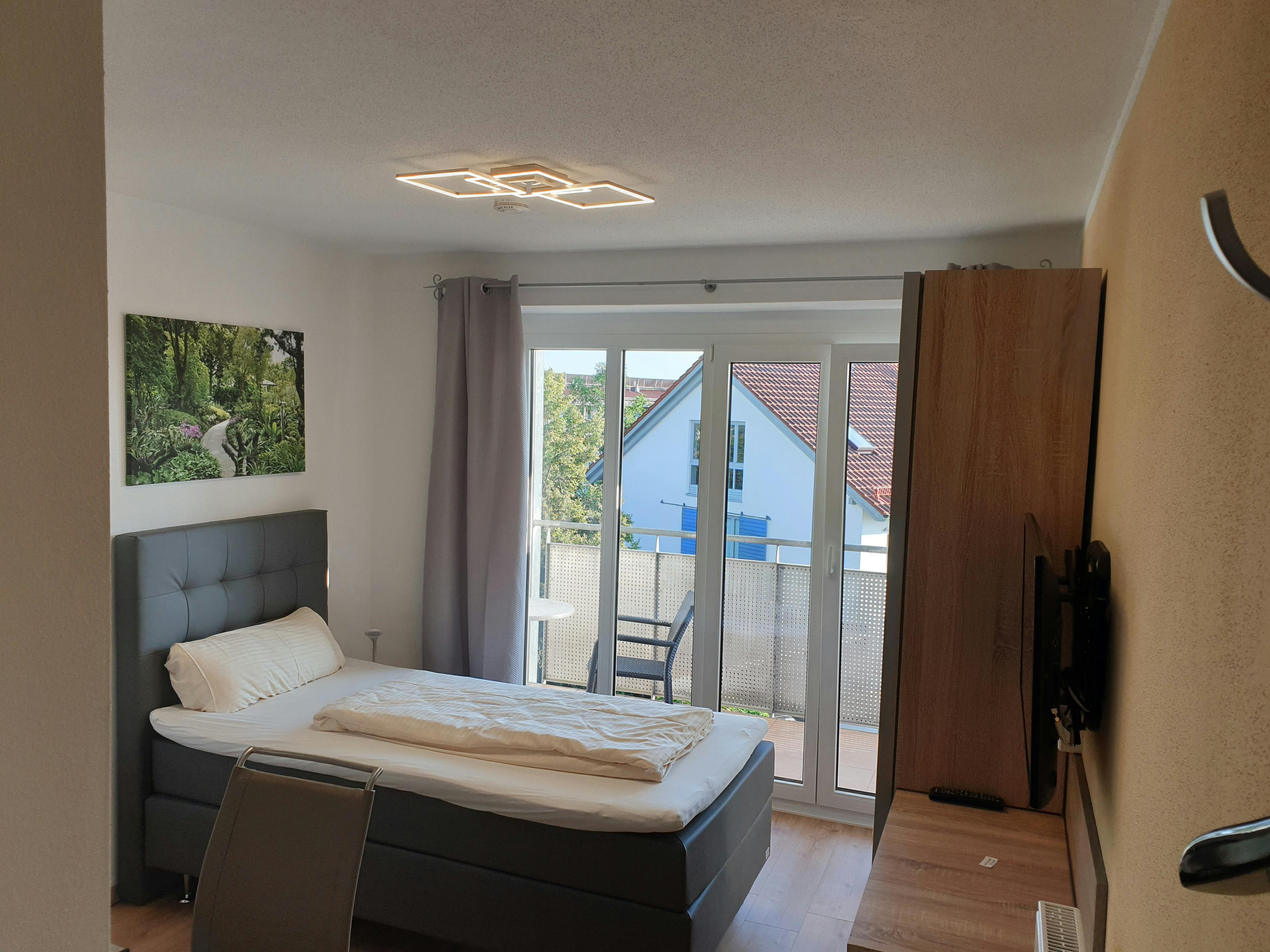 Bright Apartment with Balcony & Kitchenette – Great Location This fully furnished, non-smoking apartment offers everything you need for a comfortable stay. It features a private bathroom with shower and toilet, a cozy sleeping and living area with a TV, a small dining corner, and a desk for working or studying. The kitchenette comes fully equipped with a fridge, sink, two hotplates, microwave, kettle, dishes, cutlery, pots, and a pan — ideal for preparing simple meals at home. Step outside and enjoy your morning coffee on your private balcony, complete with a table and chair. 🧺 A shared laundry room is available in the building. Washing machine and dryer can be used for a small fee. 🧹 Bi-weekly cleaning service is included, along with fresh bed linen and towels. 🚗 Free parking is available on-site. 📍Location The apartment is conveniently located just across from a beverage store, with supermarkets like Aldi, Norma, and Penny only 3–5 minutes away on foot. The S-Bahn station can be reached in about 15 minutes, and a bus stop connecting to the station is just 1 minute from the apartment...