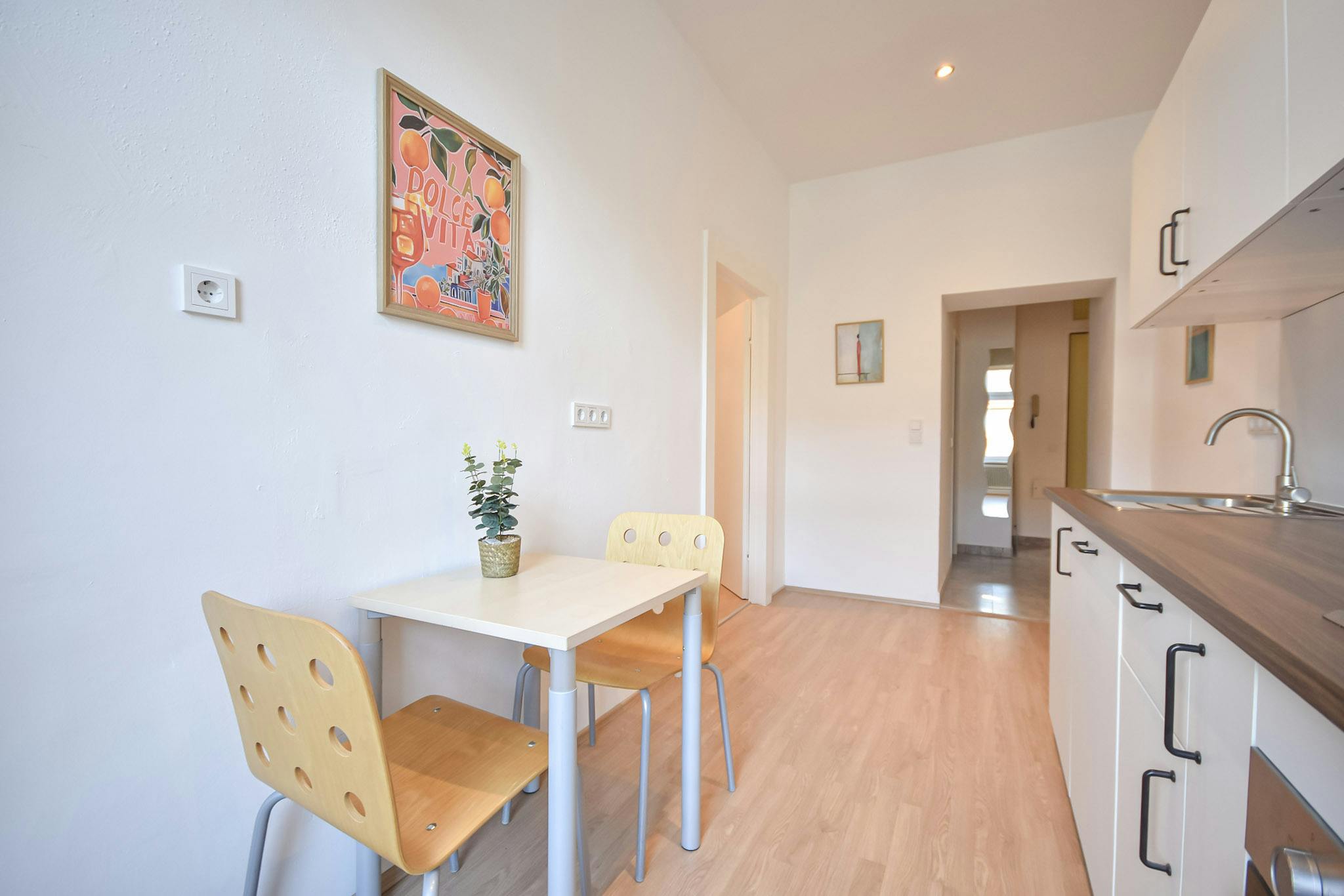 Diese frisch renovierte Altbauwohnung besticht durch ihre großzügige, lichtdurchflutete Raumaufteilung und den klassischen Wiener Charme. Alle drei Zimmer sind separat begehbar und bieten somit maximale Flexibilität – ideal für Wohngemeinschaften, Familien oder Berufstätige im Homeoffice. Die nagelneue, modern ausgestattete Küche verfügt über Geschirrspüler, Herd, Kühlschrank, Kaffeemaschine sowie einen gemütlichen Essbereich mit Blick in den ruhigen Innenhof. Das Badezimmer ist vom WC getrennt – praktisch für mehrere Bewohner. Bis auf das Badezimmer wurde die gesamte Wohnung kürzlich renoviert und mit pflegeleichten, wischbaren Böden ausgestattet. Mit drei separat begehbaren Schlafräumen bietet die Wohnung bequem Platz für 4–5 Personen. Das zusätzliche Kabinett eignet sich ideal als Homeoffice oder kleines Gästezimmer. Die Lage überzeugt durch exzellente Anbindung an den öffentlichen Verkehr – eine perfekte Kombination aus urbanem Leben und Rückzugsort. Ausstattung - Voll ausgestattete Küche: Geschirrspüler, Herd, Kaffeemaschine, Esstisch - Bad mit Wanne, separates WC - Waschmaschine - 3 Schlafzimmer: 2 Doppel-, 1 Einzelzimmer (Kabinett flexibel nutzbar) Lage & Umgebung - Supermarkt (150 m), Apotheke (130 m), Lokale & Cafés im Umkreis von 300 m - Innenstadt & Uni Wien in ca. 20 Min erreichbar Öffentlicher Verkehr Direkt vor der Tür: Straßenbahnlinien 2 & 9 5 Min zu Fuß: Linien 43, 44 & Bus 10...