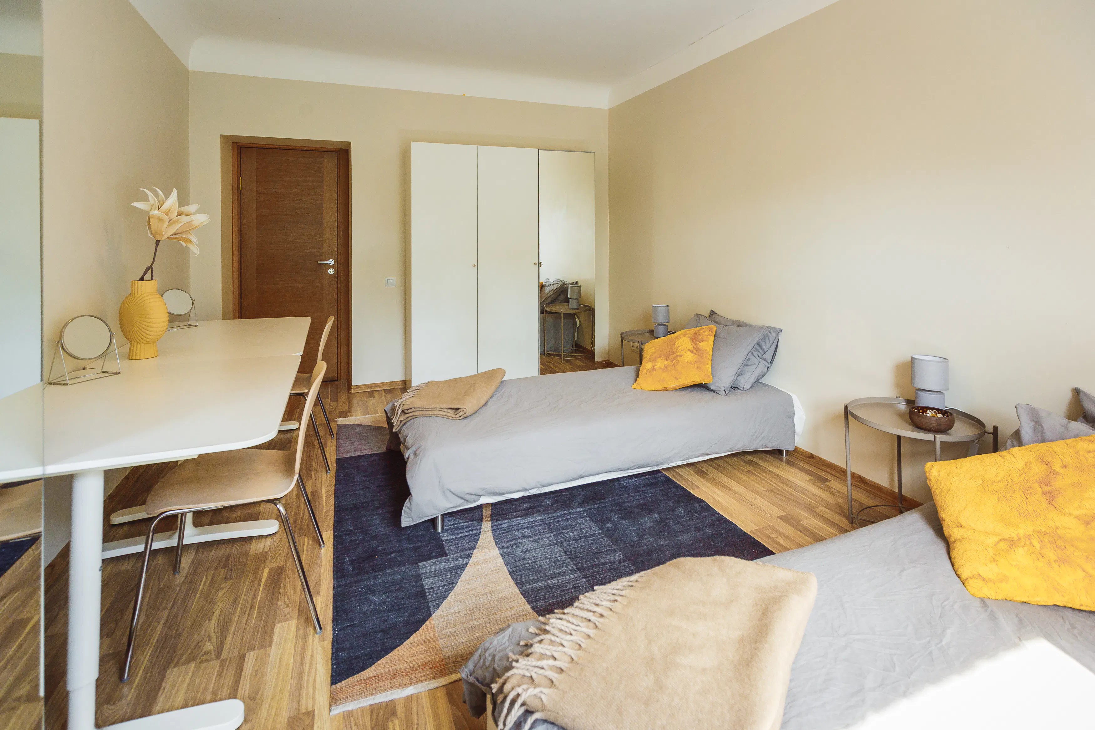 This co-living building is perfect for students, professionals, or anyone seeking a comfortable and well-equipped shared space in an amazingly prime Budapest location. Make this your new home and enjoy the ideal combination of comfort, convenience, and community living. Located in the inner city center, our fully furnished rooms offer a fresh and contemporary ambience with brand-new premium furniture. This gender-separated room is suitable for two people and features: Two separate single beds, each with a brand-new mattress and fresh linens Individual desks and chairs for each tenant Spacious closets/wardrobes for personal storage Shared bathroom facilities The room is fully prepared for co-living, offering privacy and functionality for each resident. APARTMENT Our spacious, modern building is designed for co-living, providing a comfortable and convenient living experience for all residents. Enjoy a newly furnished common space, complete with a well-equipped kitchen and laundry facilities, including: Fridge | Freezer | Oven | Stove | Washing machine | Dining table | Microwave NEIGHBORHOOD Situated along the well-connected Thököly Road in Budapest’s lively District 7, Thököly út 18 offers a prime location that combines urban accessibility with local charm. This area is favored for its vibrant street life, excellent public transport links, and rich mix of tradition and modernity. Thököly út is a major thoroughfare, yet the apartment is located in a part of the neighborhood that retains a peaceful, everyday charm. Nearby, you’ll find classic Hungarian eateries, local cafés, and small shops that add to the authentic atmosphere. For a more modern touch, surrounding districts offer diverse restaurants, bars, and cultural venues. The location is especially convenient for students and professionals alike. ELTE, McDaniel College, the Veterinary University, and Keleti Railway Station are all within walking distance. With numerous tram, bus, and metro connections right outside your door, the entire city is easily accessible. Green spaces like City Park are close by, offering an escape into nature for jogging, strolling, or relaxing. Thököly út 18 strikes a perfect balance between vibrant city life and neighborhood comfort — making it an ideal base in the heart of Budapest. PLEASE NOTE: Bills are not included in the rent price. An admin fee (one-time, payable before check-in) applies. 🕗 CHECK-IN TIME: Monday to Friday – from 8:00 am to 6:00 pm If you require a different check-in time, message us and we will try to accommodate your request 🔊 RENTAL CONDITIONS: A rental contract must be signed and respected by the tenant(s) Required documents: a copy of an ID document and fiscal number All tenants must be listed during the booking and check-in process Please note that we kindly request you to complete all payments (deposit & admin fee) within 48 hours of signing your contract. Security deposit will be returned if the accommodation is left in the same condition as received. The deposit cannot be used as payment for the final month’s rent Tenants are expected to keep the accommodation clean and in good condition No parties, loud noise after 22:00, or smoking indoors No pets or animals allowed Guests are permitted for a maximum of 5 days, with longer stays subject to prior approval We issue legal rental contracts, provide official receipts, and can assist with residential visa applications if needed. Note: Photos are representative of the room's layout and design. Actual furniture placement may vary slightly...