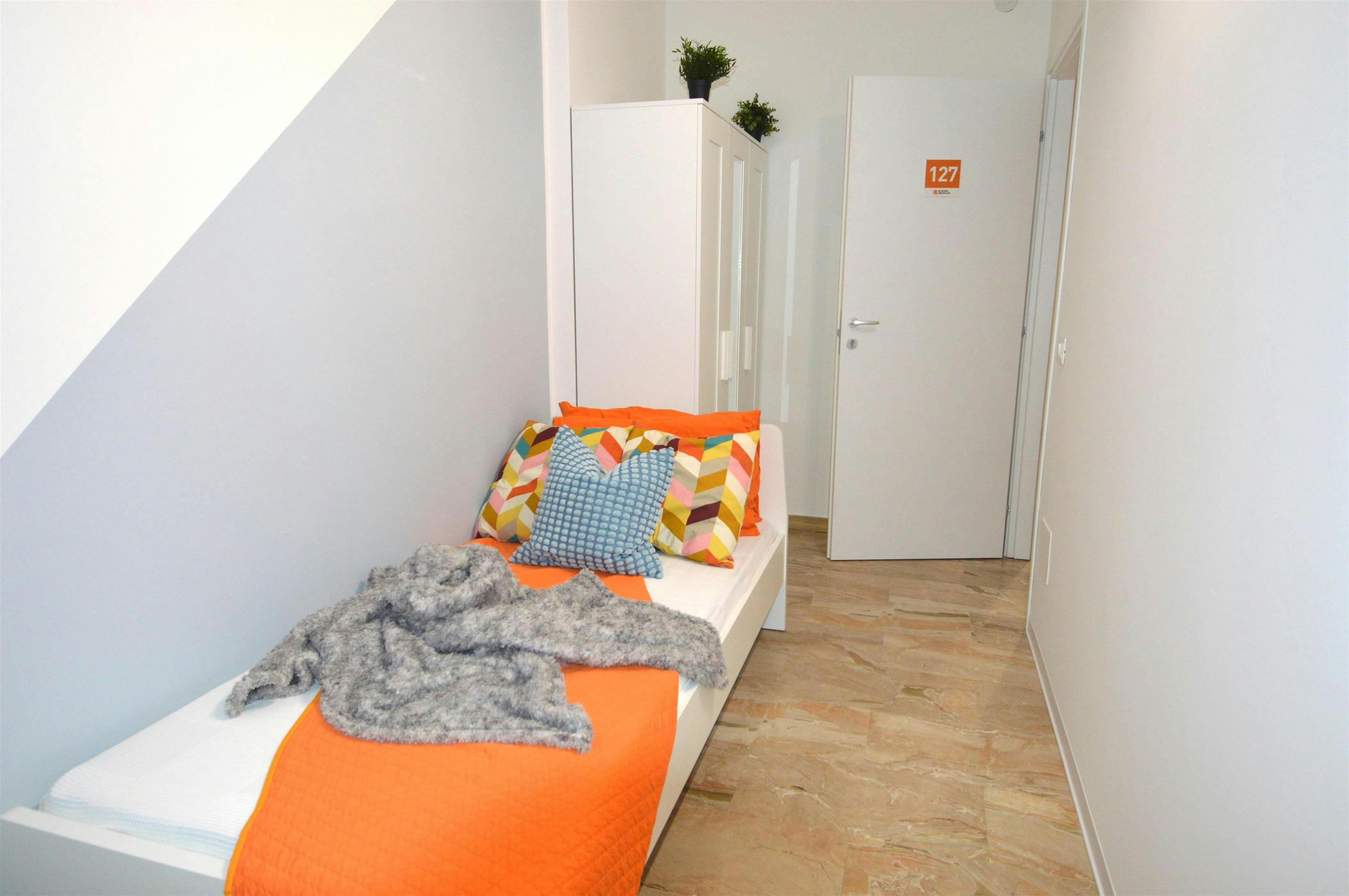 Si affitta una bellissima singola ristrutturata appositamente per offrire comfort e comodità ai nostri studenti, in una posizione strategica e ambita. La è dotata di letto singolo, armadio 3 ante, scrivania, comodino, tendaggi, scarpiera, libreria. I colori delle pareti favoriscono il buon umore e aiutano nello studio...