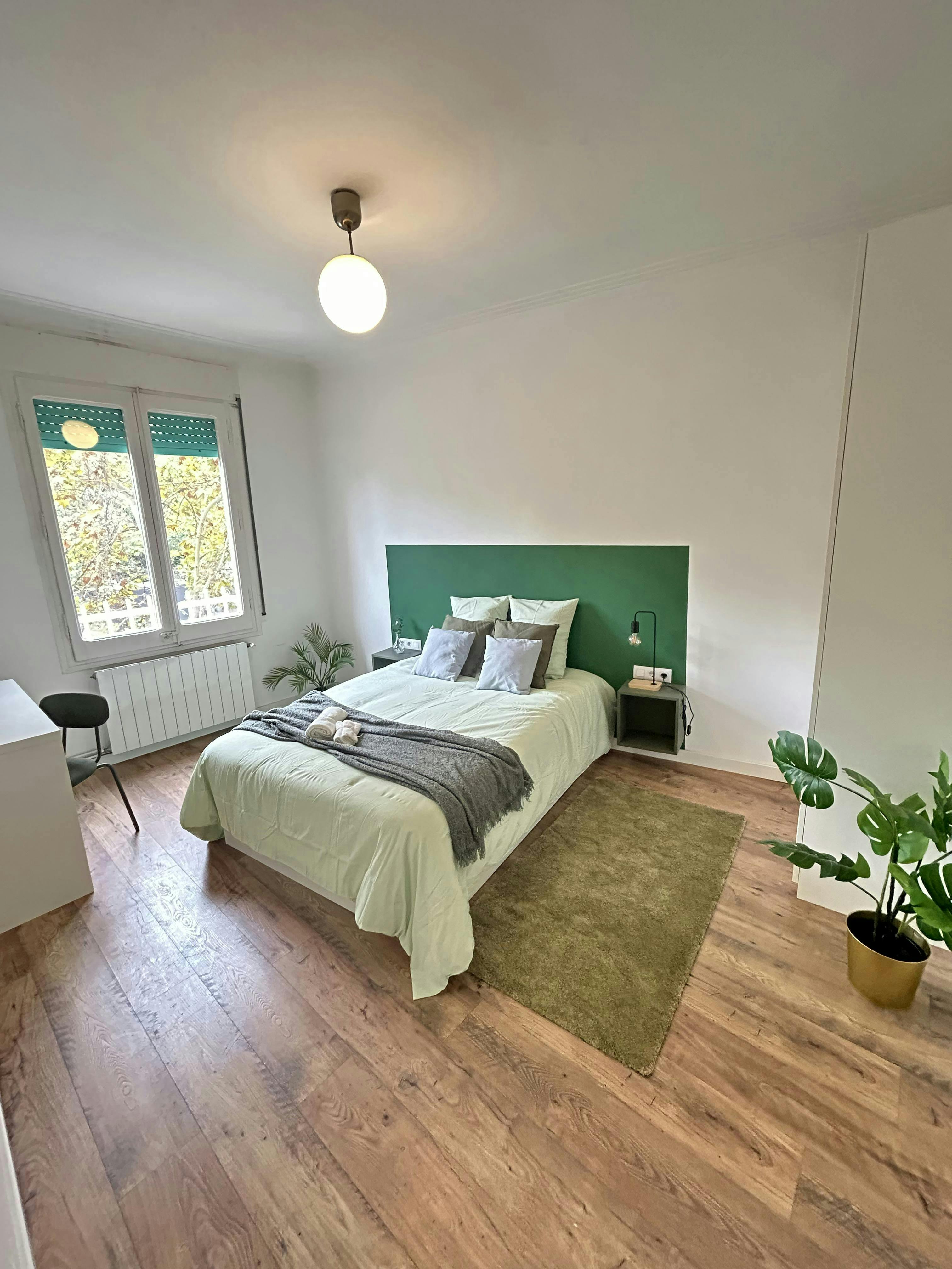 Big room with amazing mountain views in a cozy apartment fully equipped near metro Poblesec and montjuic. this Beautiful apartments has six rooms, two fulls bathrooms and one kitchen. The apartment is totally renovated with all the comodities. The neigbourhood is very centric and very quiet, close to Montjuic mountain and ten minutes away from the city center. Check in hours: Monday to Friday (except Bank Holidays) in office hours. Check in on weekends and bank holidays up to availability prior notice (A supplement could be charge) Check-in is available Monday to Friday during office hours. On weekends and public holidays, check-in is possible but may incur an additional fee...