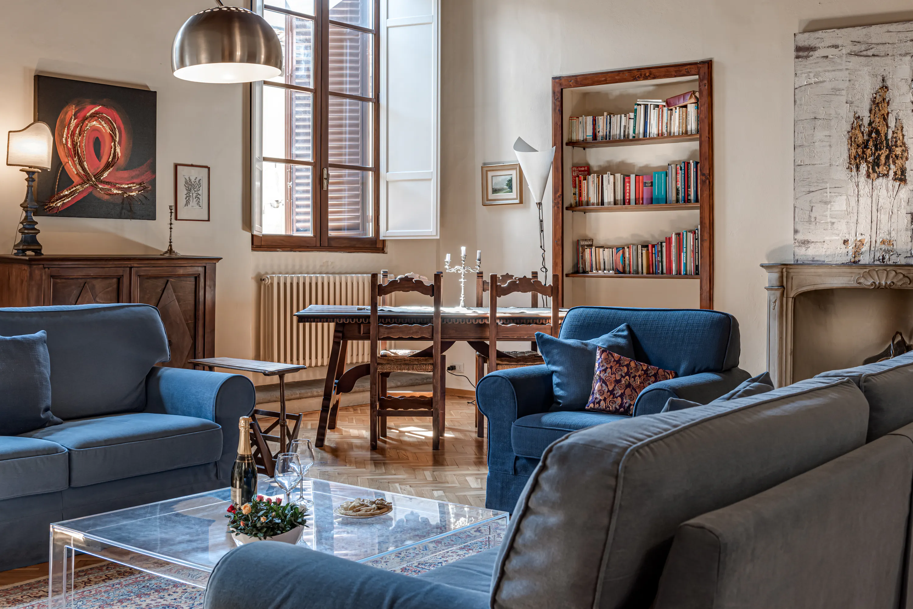 Prestigious Apartment in Classic Florentine Noble Style, Located in a Historic Palace in the Heart of Florence Nestled in the timeless elegance of Florence’s historic center, this exclusive apartment blends charm and comfort in a refined setting. Situated on the second floor of a prestigious period building, easily accessible by elevator, the residence stands out for its spacious interiors and exquisite finishes. The grand living room, adorned with frescoed ceilings and architectural details of the era, serves as the heart of the home—perfect for entertaining and hosting guests. The two master bedrooms, each with an en-suite bathroom, ensure maximum comfort and privacy. The fully equipped kitchen combines functionality and style, offering an ideal space for culinary enthusiasts. A unique residence, perfect for those who wish to experience the authentic atmosphere of Florence’s most prestigious area, just steps away from museums, exclusive boutiques, and renowned restaurants. + The house is provided without bed linen and towels. Linen can be rented at a cost of €7 per week for a single bed set or €10 per week for a double bed set (sheets + towels). + At the time of booking, the following payments are required: the first month’s rent, the security deposit, the first month’s utilities, and the final cleaning fee. These payments must be made within 7 days of booking confirmation; otherwise, the reservation will be cancelled. + Every 30 days from the start of the lease, the rent and utilities for the following month must be paid...