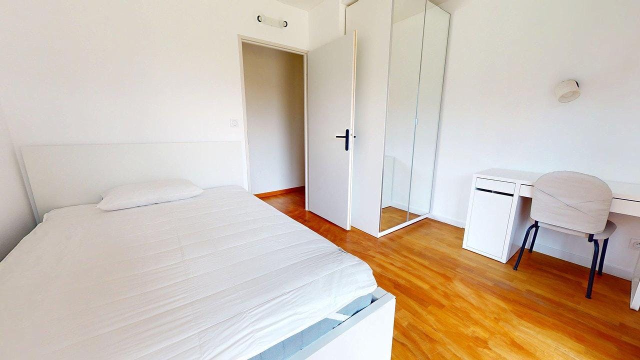 🏡 Notre agence vous présente cette colocation meublée de 80m2, située au 2e étage d’une résidence calme et verdoyante au 3 impasse des Bosquets à Toulouse. Cet appartement lumineux se compose de 4 chambres, d’un salon cosy, d’une cuisine moderne avec espace repas, d’un balcon agréable, ainsi que de deux salles d’eau et de WC séparés. 🍽 LES ESPACES COMMUNS La cuisine est spacieuse et entièrement équipée avec : four, micro-ondes, plaques de cuisson, hotte, réfrigérateur congélateur, évier, nombreux rangements et toute la vaisselle nécessaire. L'espace comporte également une table ronde avec quatre chaises. La cuisine donne accès direct à un balcon avec vue dégagée sur les arbres, idéal pour les pauses café ou les repas d’été. Le salon donne sur la cuisine par une ouverture dans le mur, il est aménagé avec un canapé ainsi qu'un fauteuil, deux tables basses gigognes, une télévision écran plat et son meuble TV. L’espace est parfait pour se détendre. Pour votre confort, vous bénéficierez de deux salles d'eau avec meuble vasque, et douche, et l'une équipée d'une machine à laver. 🌳 LE BALCON Un vrai plus pour cet appartement : un balcon calme et sans vis-à-vis, équipé d’une table de jardin et de chaises. Vous profitez d’un cadre verdoyant, au calme. 🛏️ LA CHAMBRE Elle est équipée d'un lit (double), bureau et placard de rangement. Le plus : la chambre donne accès au balcon partagé avec la cuisine. 📍 LE QUARTIER L’appartement est situé dans un environnement résidentiel paisible tout en restant proche des commodités. Le 3 impasse des Bosquets est situé à 300 m de la station "Mirail - Université" ou vous trouvez l'université Toulouse Jean Jaurès. Tout est accessible à immédiate proximité : superette, parc, pharmacie. Les informations sur les risques auxquels ce bien est exposé sont disponibles sur le site Géorisques : (hidden) Montant estimé des dépenses annuelles d'énergie pour un usage standard : 1513 € par an. Prix moyens des énergies indexés sur l'année 2021 (abonnements compris...